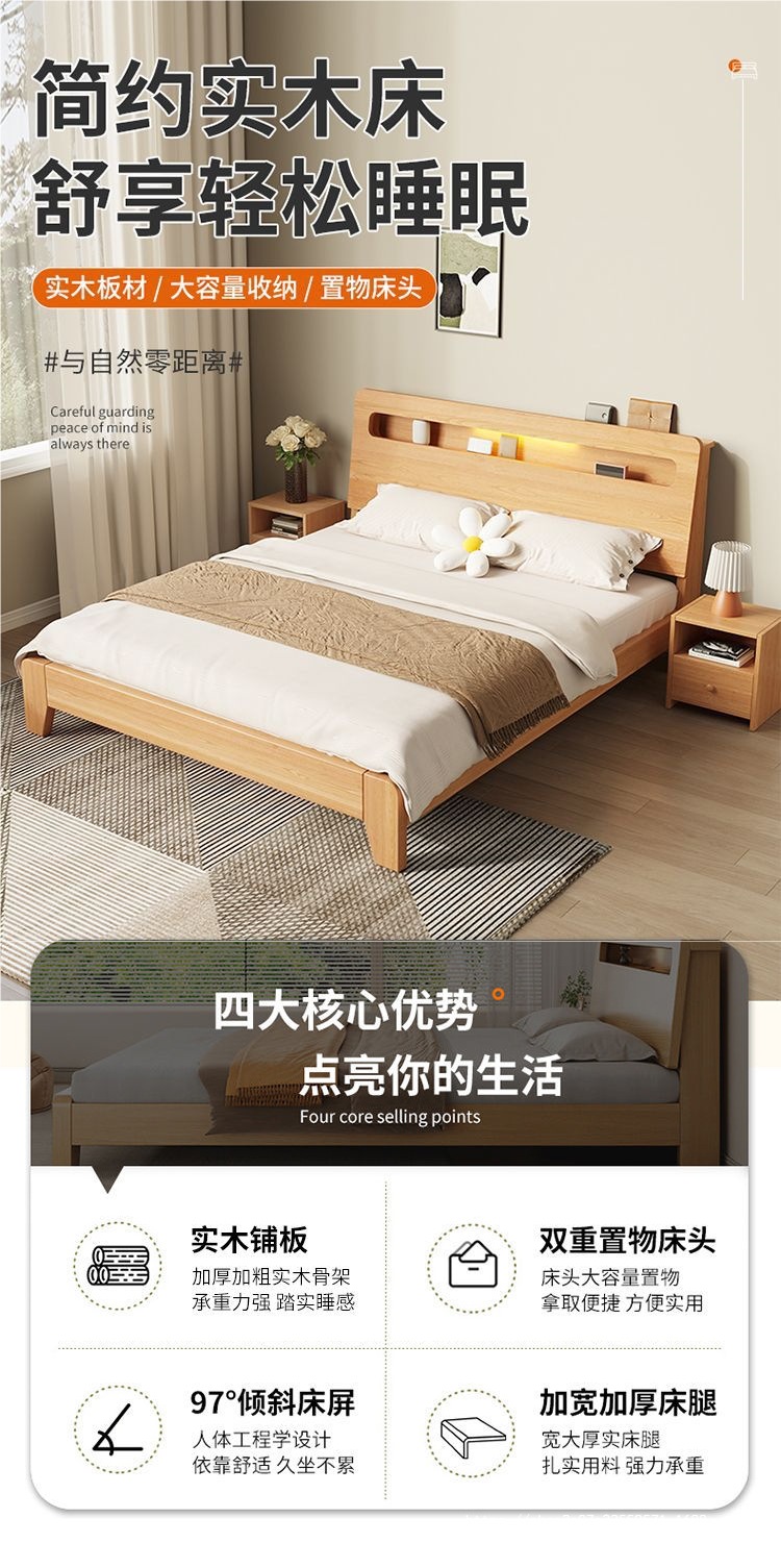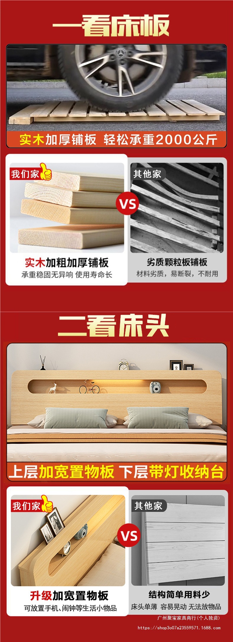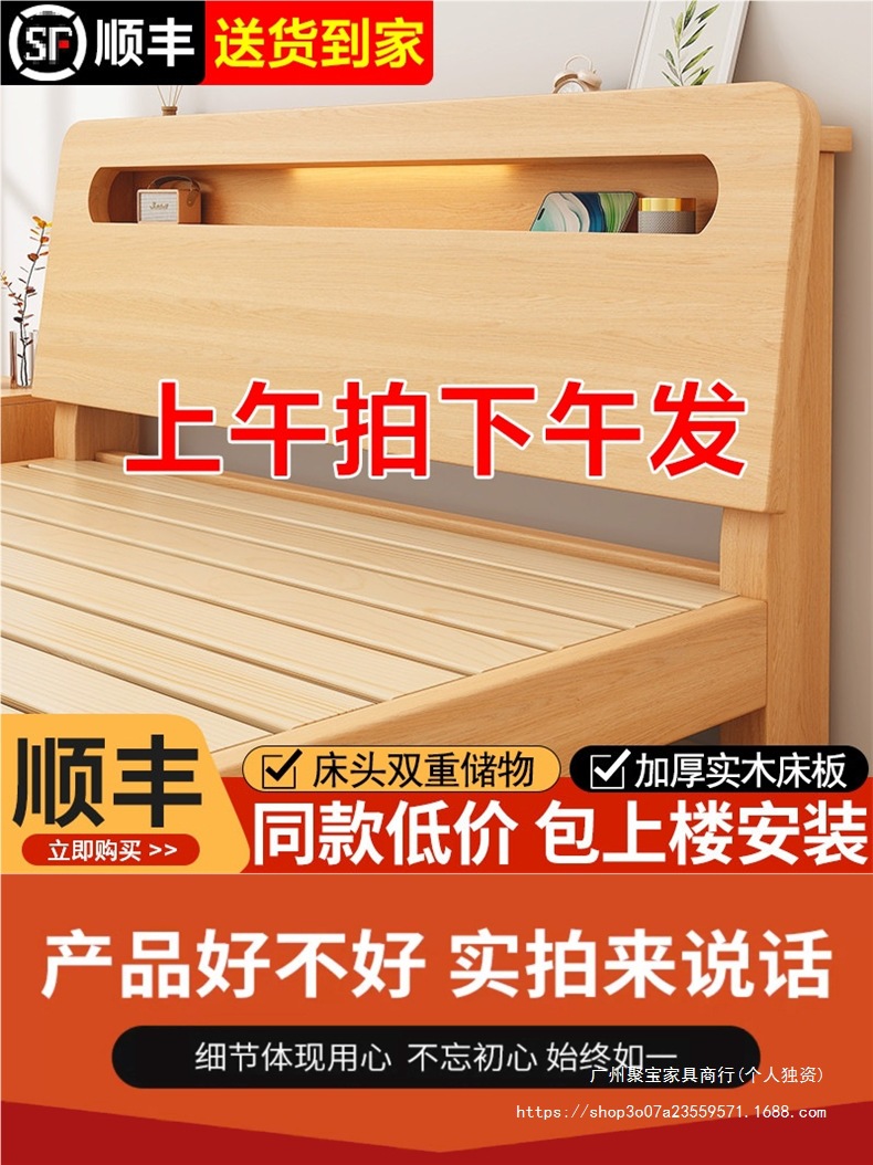 단단한 나무 침대 간단한 현대 더블 침대 프레임 1.5m 경제적인 공장 직접 판매 1.2 싱글 침대 임대실 홈스토어 가기