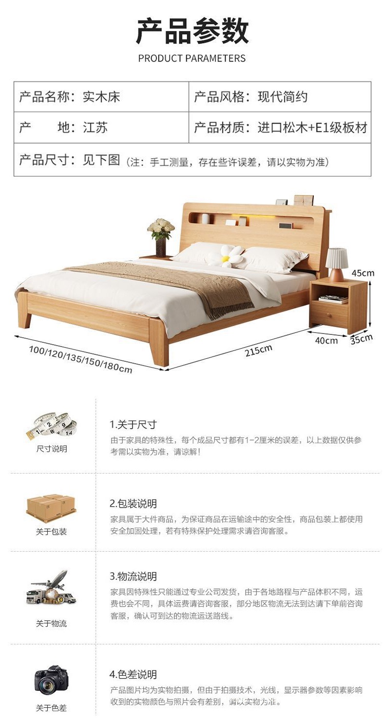 • 두꺼운 통나무 침대 + 매트리스 + 침대협탁 1개 [집으로 배송]