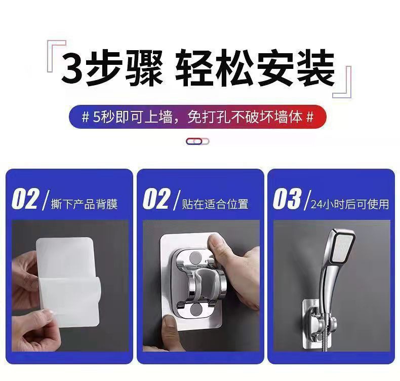 구멍이 없는 샤워기 브래킷, 조절 가능한 노즐 걸이, 욕실 샤워기 유물, 레인 샤워기 고정 벽 베이스
