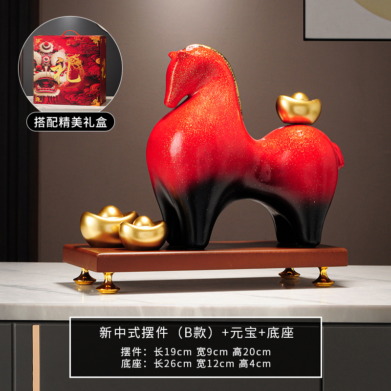 • 대형 말 장식품 레드 + 주괴 + 베이스 [선물 상자 포장]