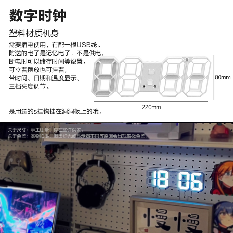 • ✷아아아아✷22cm 흰색 플라스틱 디지털 시계✷아아아아✷