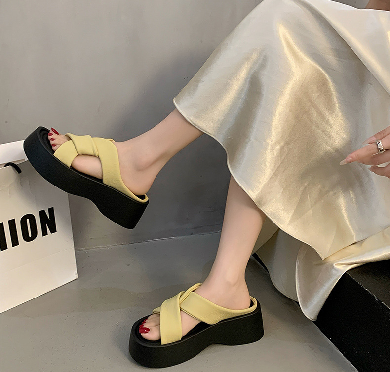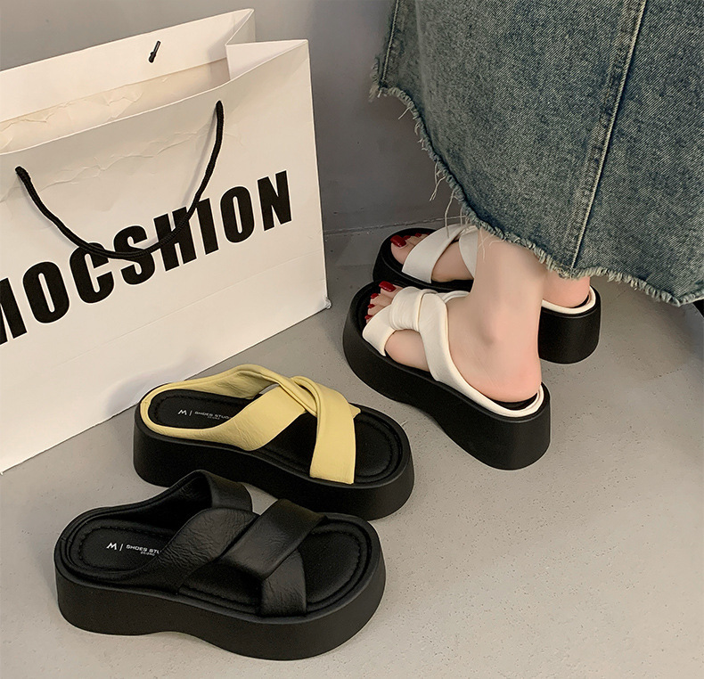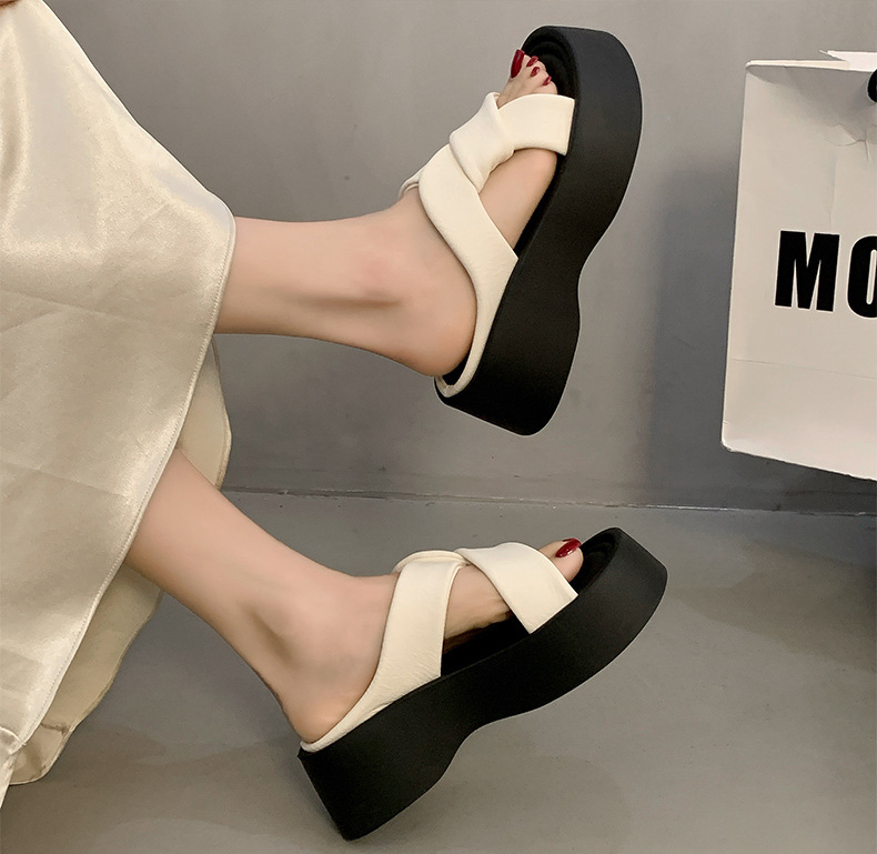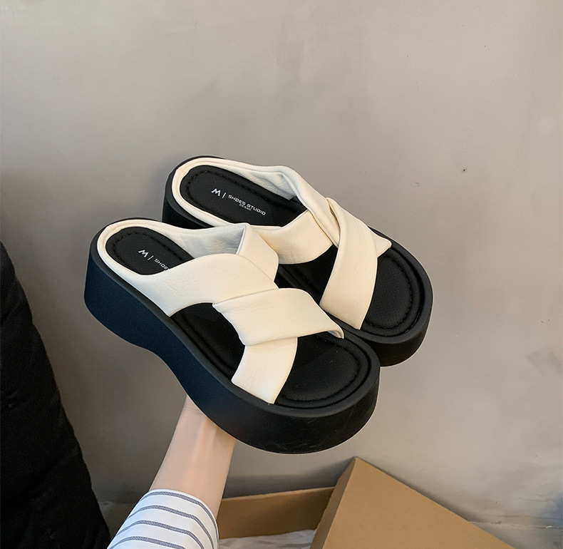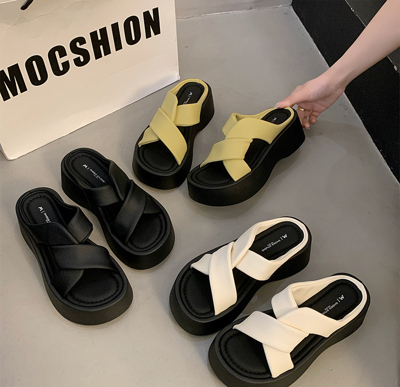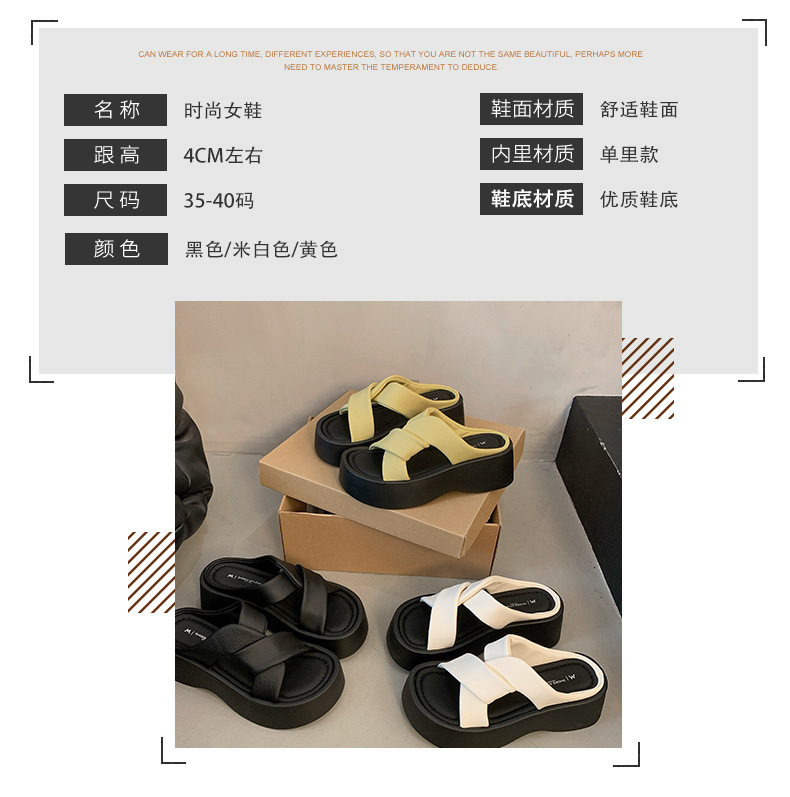 여성용 새 슬로프 힐 슬리퍼, 해변 여름, 가볍고 두꺼운 밑창, 작은 사람들을 위한 패셔너블한 슬리퍼, 복고풍스토어 가기