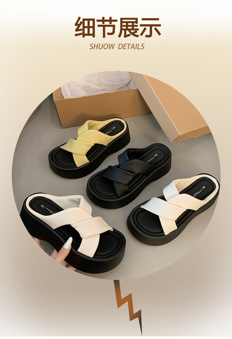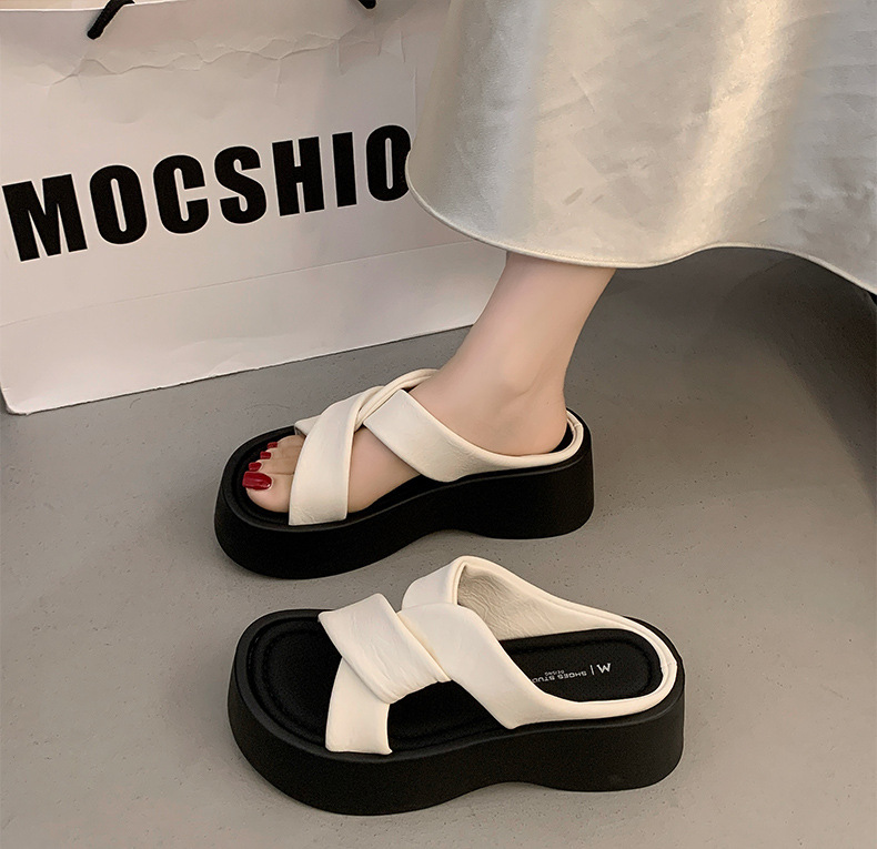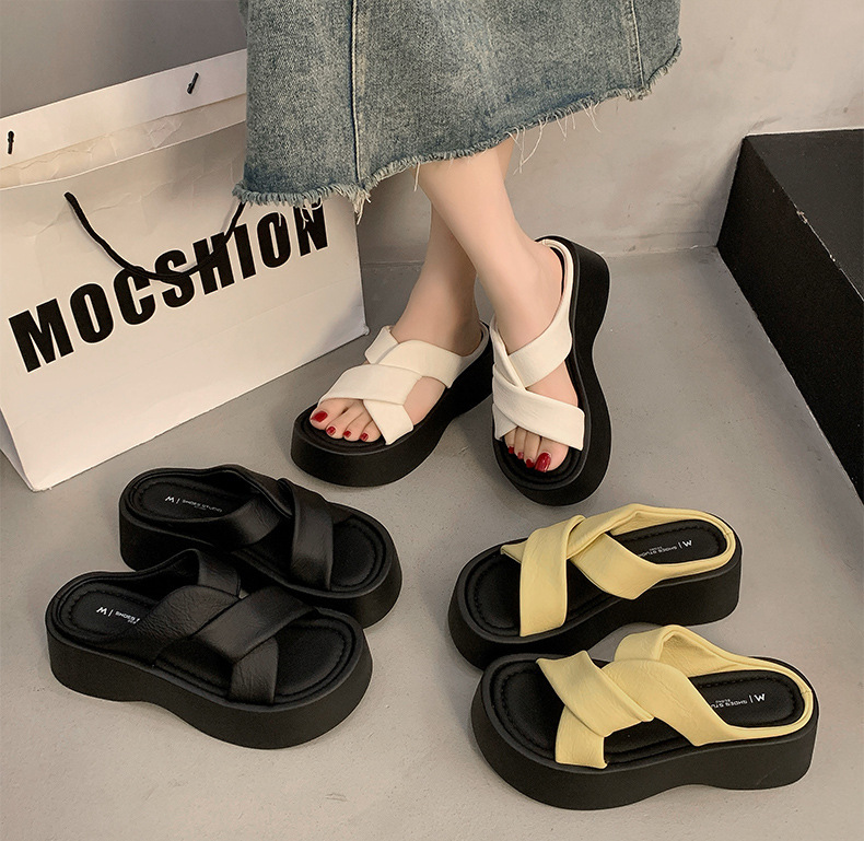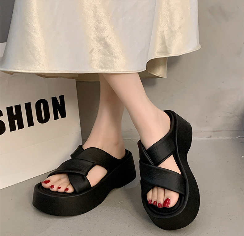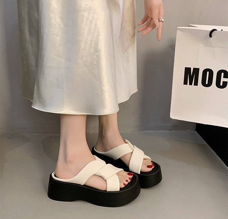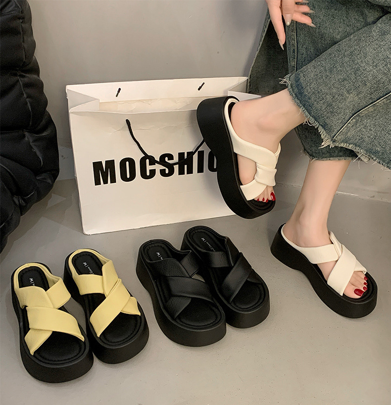 여성용 새 슬로프 힐 슬리퍼, 해변 여름, 가볍고 두꺼운 밑창, 작은 사람들을 위한 패셔너블한 슬리퍼, 복고풍스토어 가기