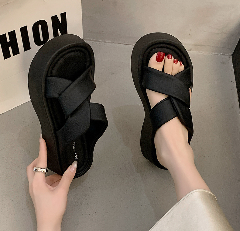 여성용 새 슬로프 힐 슬리퍼, 해변 여름, 가볍고 두꺼운 밑창, 작은 사람들을 위한 패셔너블한 슬리퍼, 복고풍