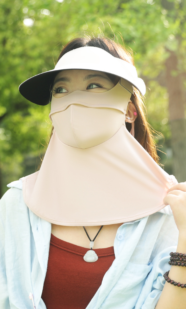아이스 실크 자외선 차단 마스크, 햇빛 가리개, 빈 모자, 얼굴, 목, 어깨 일체형 비닐 보호, 통기성, 답답하지 않음, 입체 연골 지지대