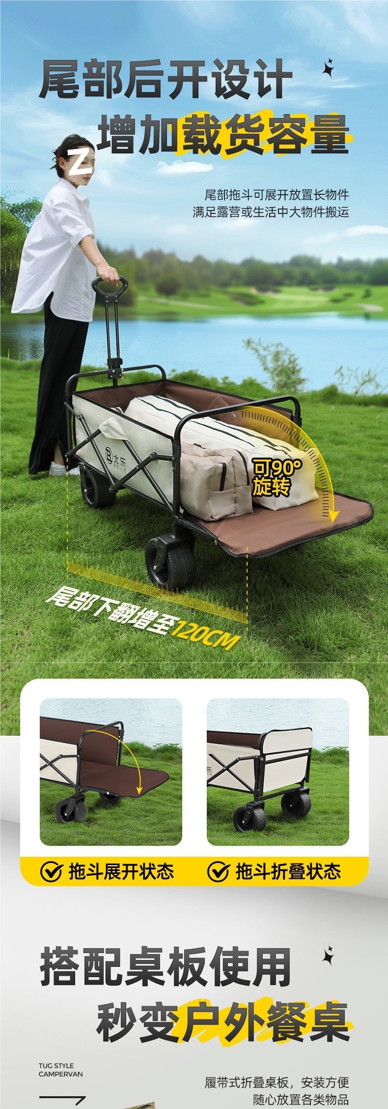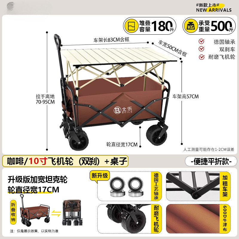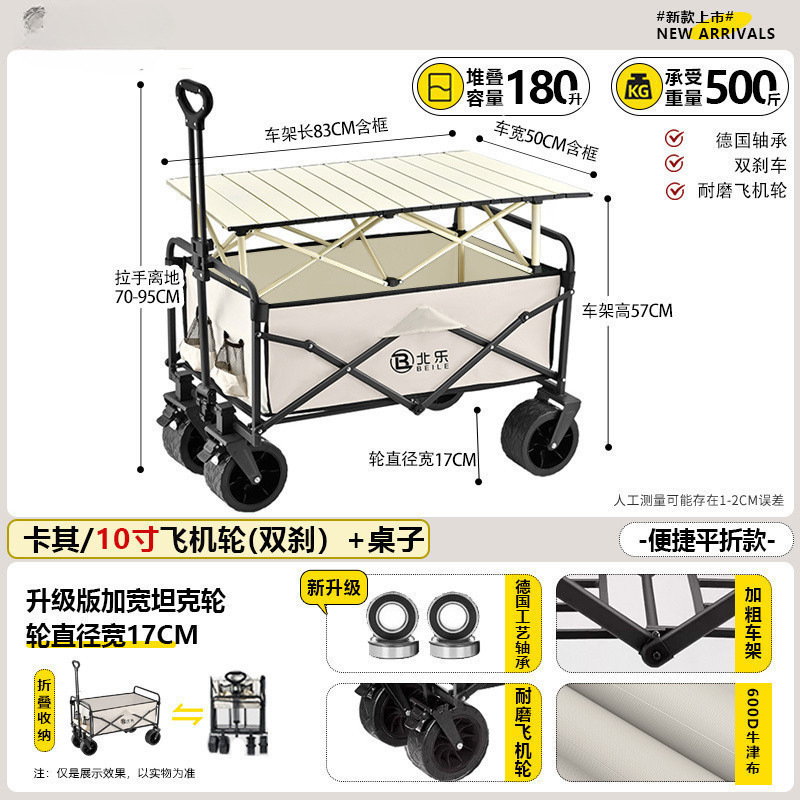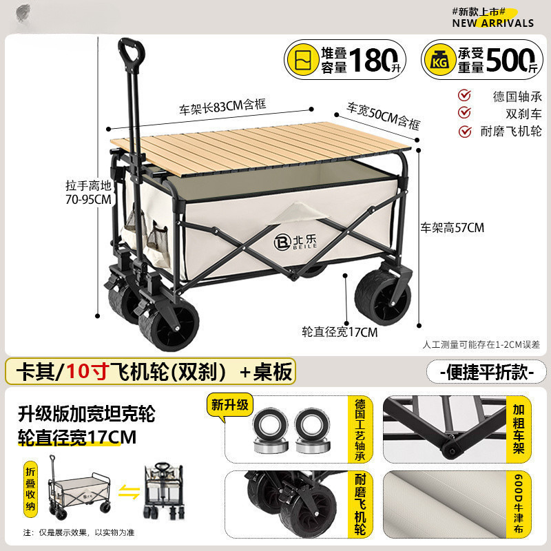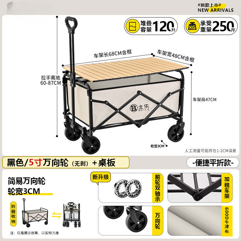 새로운 캠핑 카트 접이식 야외 핸드 푸시 피크닉 카트 휴대용 캠프 트레일러 트롤리 다기능 스톨