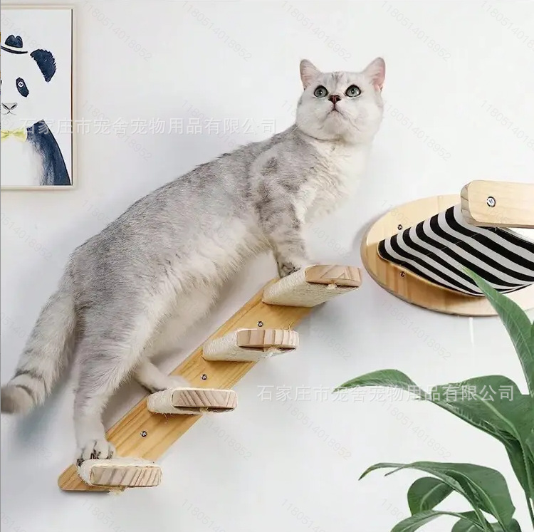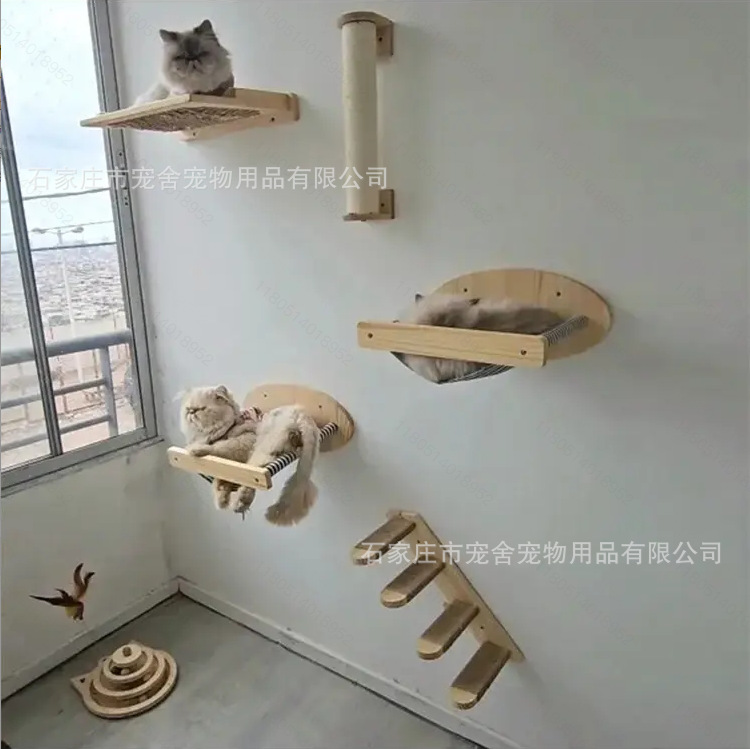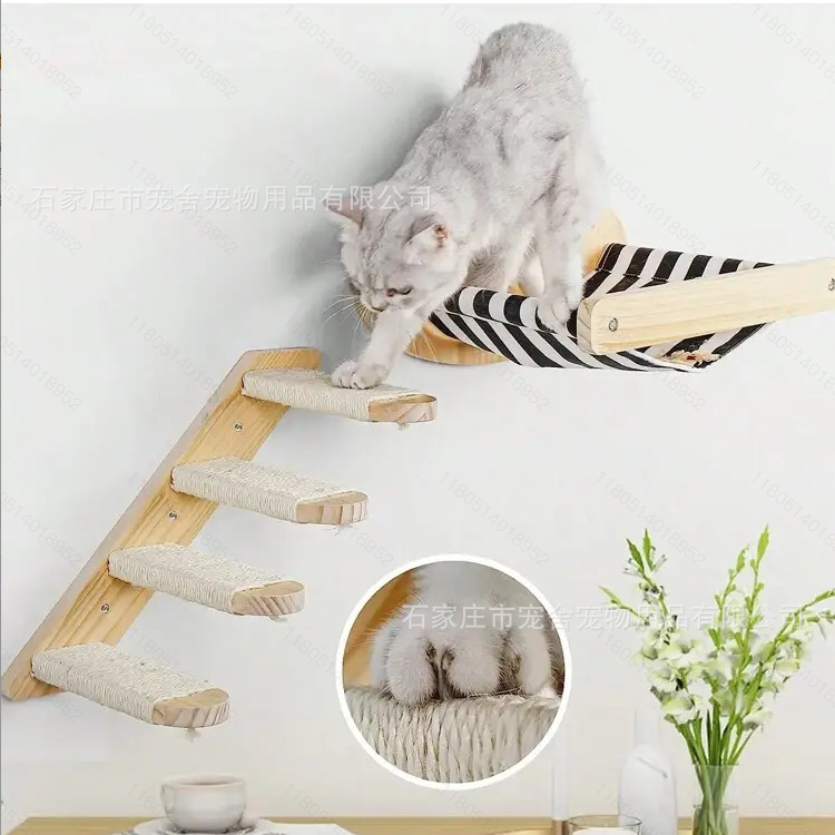 벽걸이형 고양이 점프 플랫폼, 목재 캔버스 고양이 둥지, 삼나무 로프, 목재 고양이 스크래치 포스트, 도매 단단한 고양이 클라이밍 프레임스토어 가기