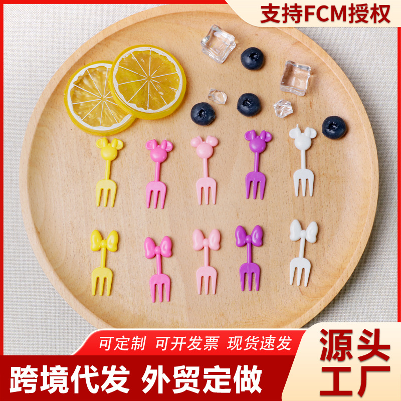 만화 과일 포크 세트, 귀여운 미니 도시락, 어린이 동물 스낵 장식, 창의적인 플라스틱 과일 스낵