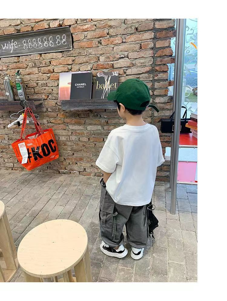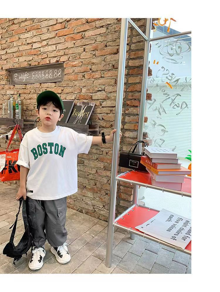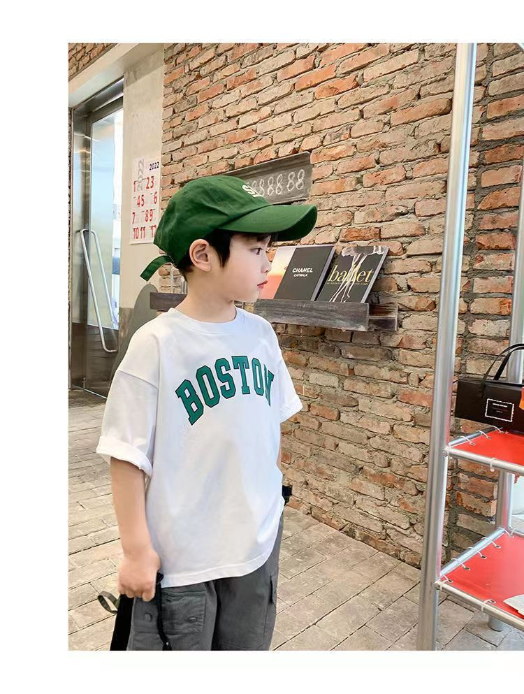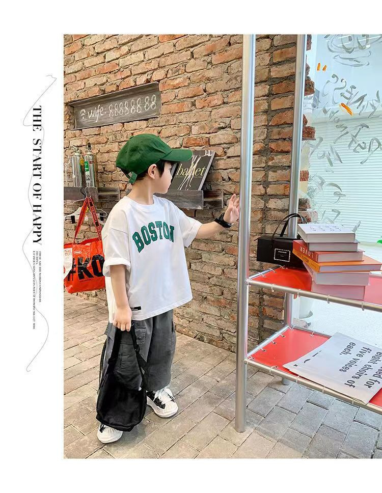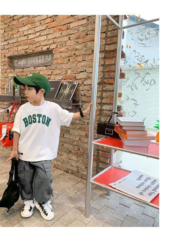 트렌디한 브랜드 여름 신작 패턴 소년 반팔 프린트 반팔 트렌디 탑 맞춤형 라운드 넥 티셔츠 루즈하고 다재다능함스토어 가기
