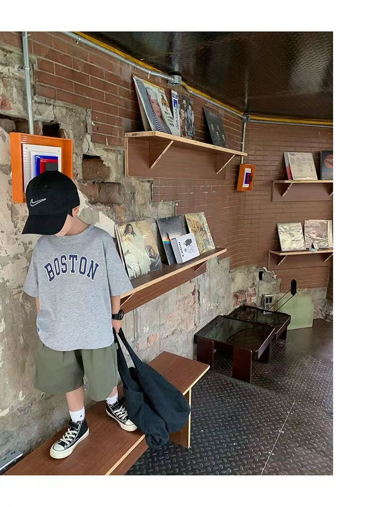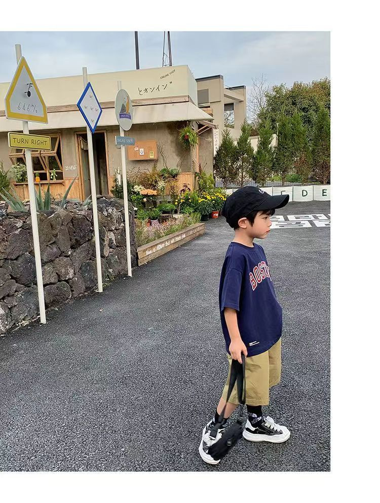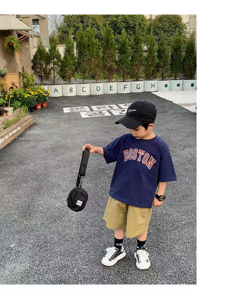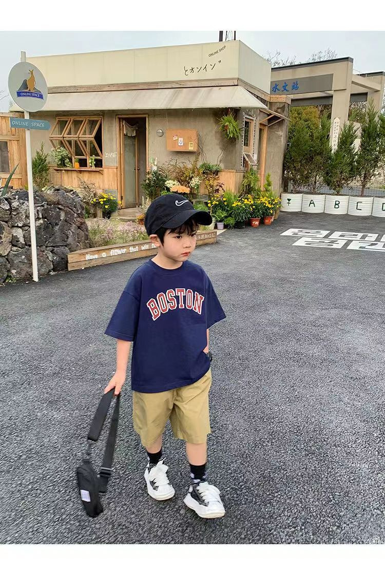 트렌디한 브랜드 여름 신작 패턴 소년 반팔 프린트 반팔 트렌디 탑 맞춤형 라운드 넥 티셔츠 루즈하고 다재다능함스토어 가기