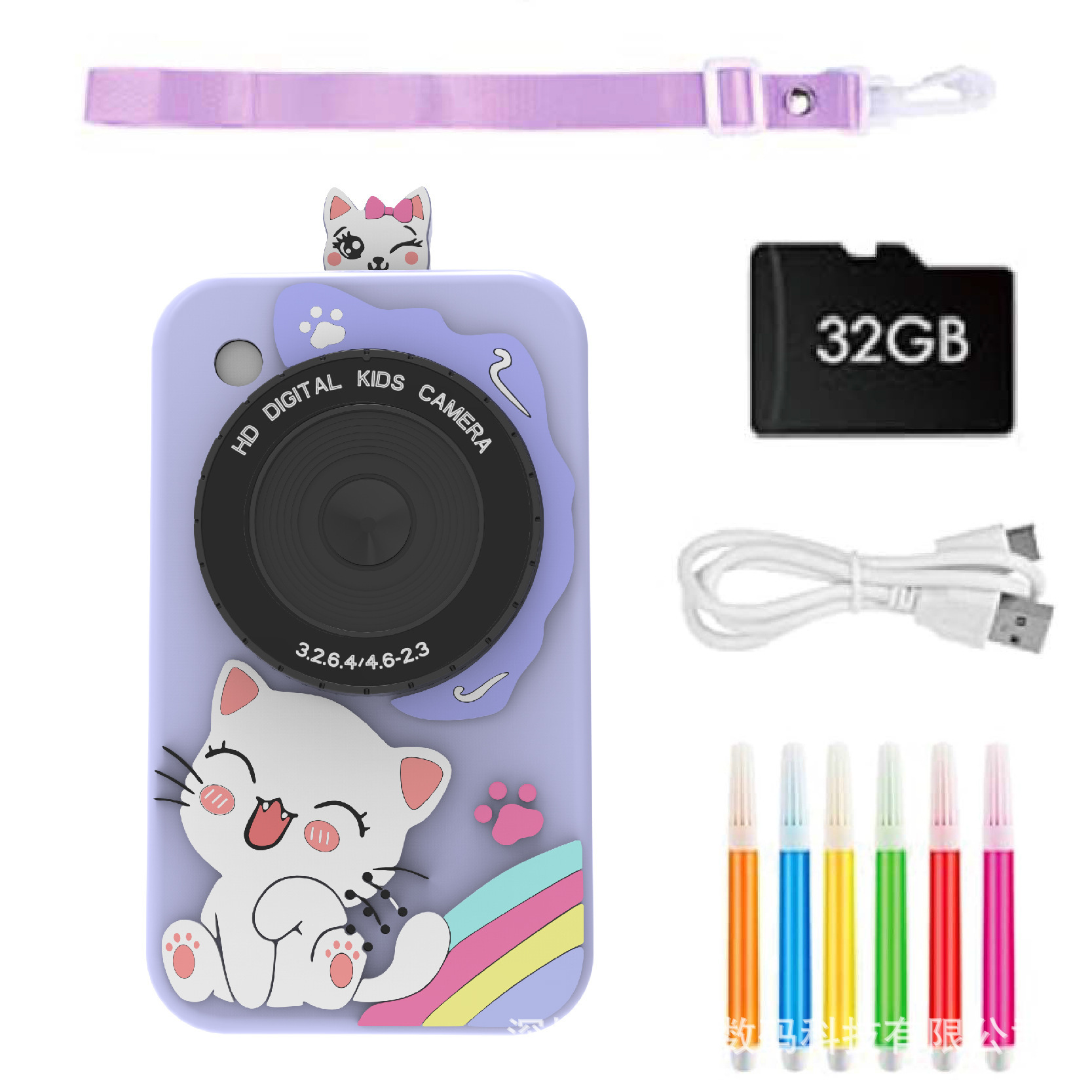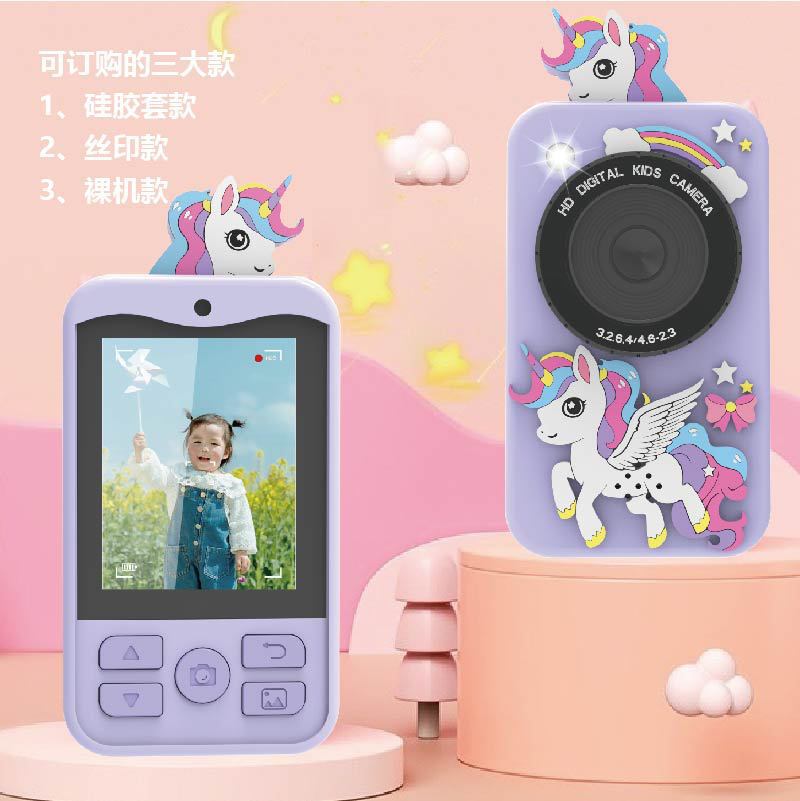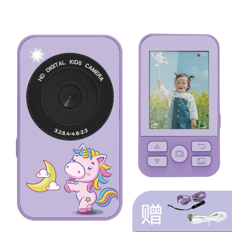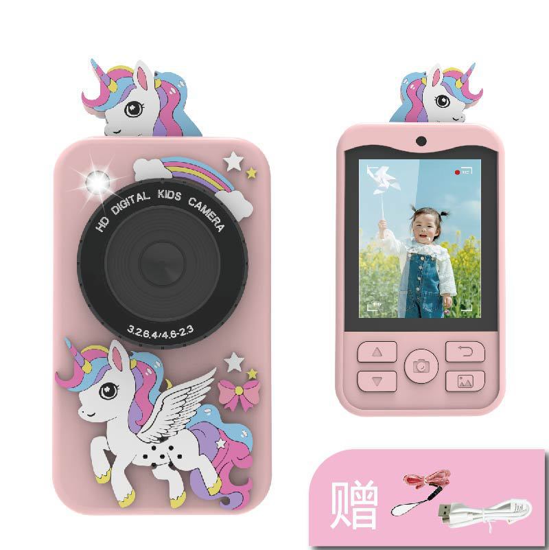 신형 크로스보더 어린이 카메라 고화질 듀얼 카메라 미니 휴대폰 카메라 유니콘 만화 교육용 카메라 렌즈