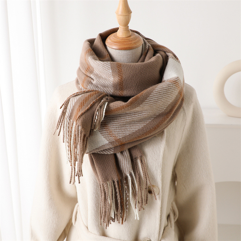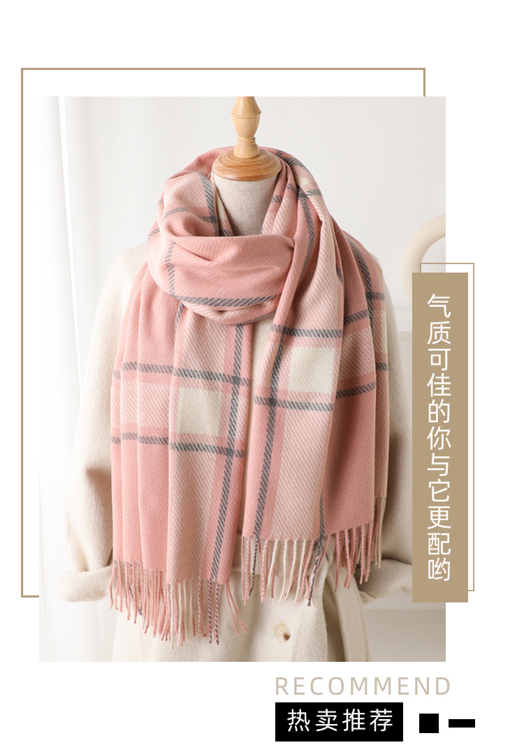 한국식 심플하고 우아한 모조 캐시미어 체크 무늬 따뜻한 숄과 스카프, 가을 겨울 패셔너블한 분위기, 다용도 태슬 스카프스토어 가기