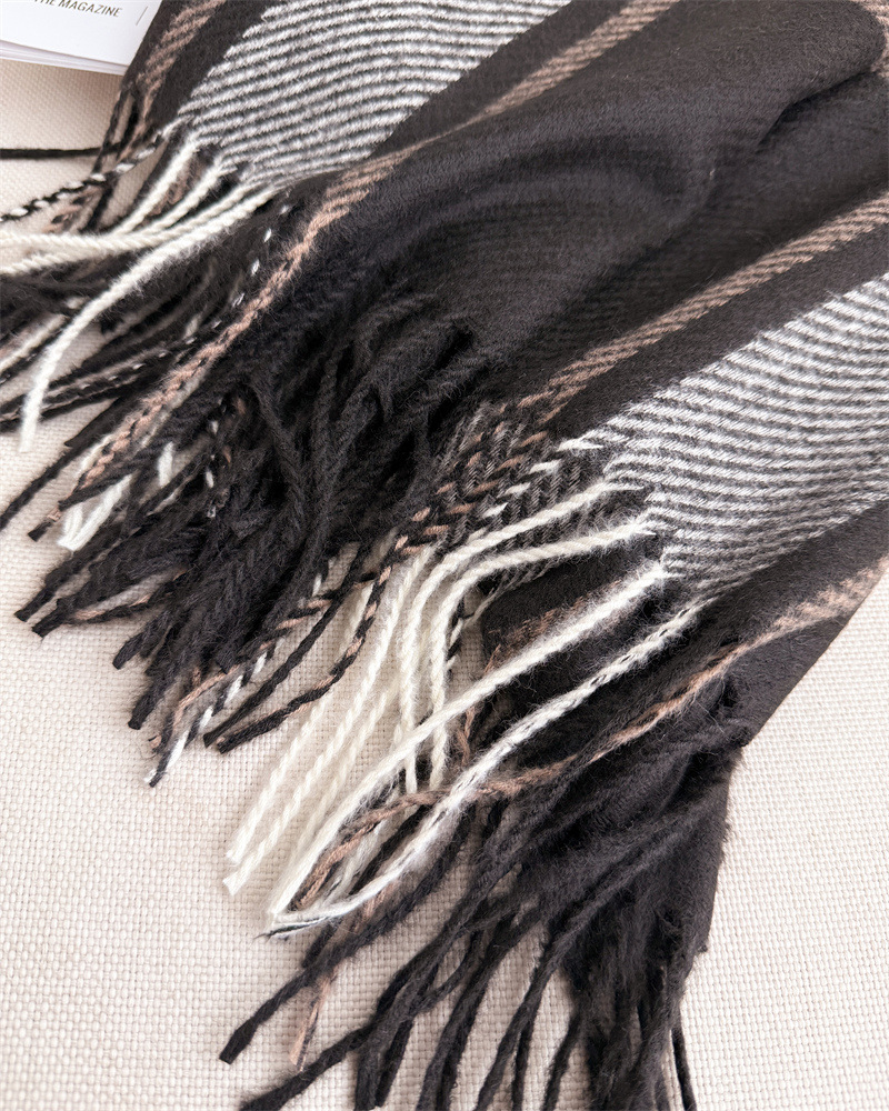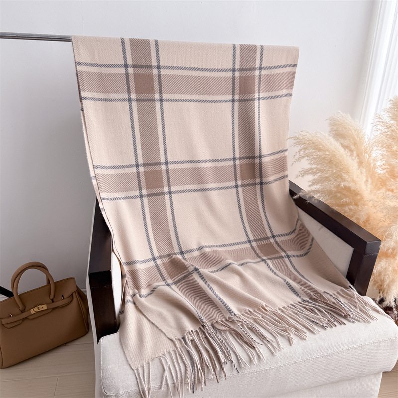 한국식 심플하고 우아한 모조 캐시미어 체크 무늬 따뜻한 숄과 스카프, 가을 겨울 패셔너블한 분위기, 다용도 태슬 스카프