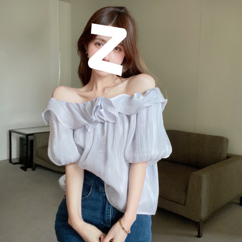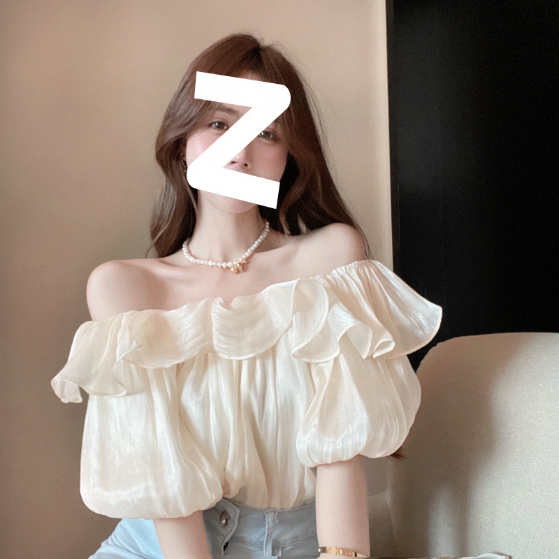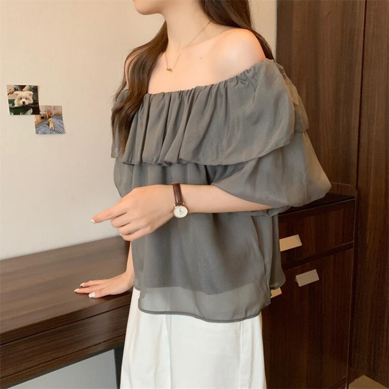 순수한 욕망 기질의 여성용 원숄더 셔츠, 니치 탑, 달콤한 러플 스타일, 오프숄더 쉬폰 셔츠, 여름스토어 가기