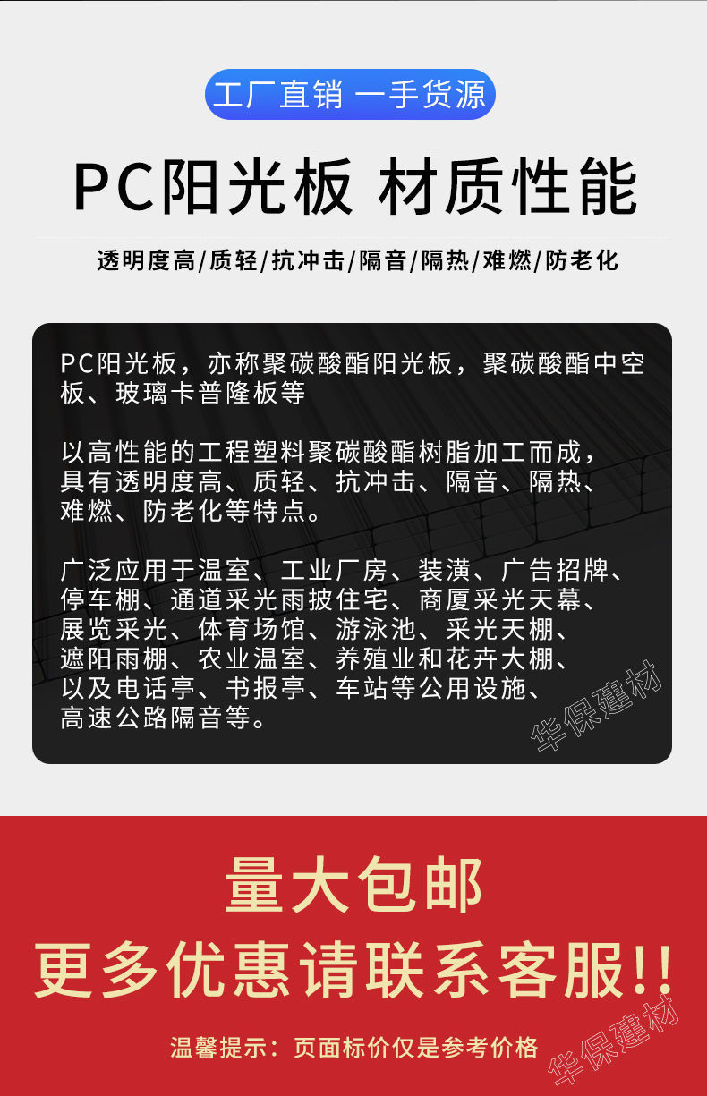 PC 선샤인 플레이트 투명 야외 단열 지붕 차양 차고 천막 파티션 중공 플레이트 벌집 4층 상업스토어 가기