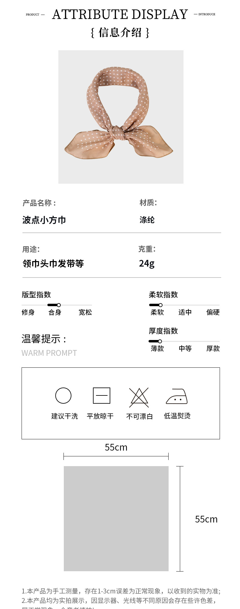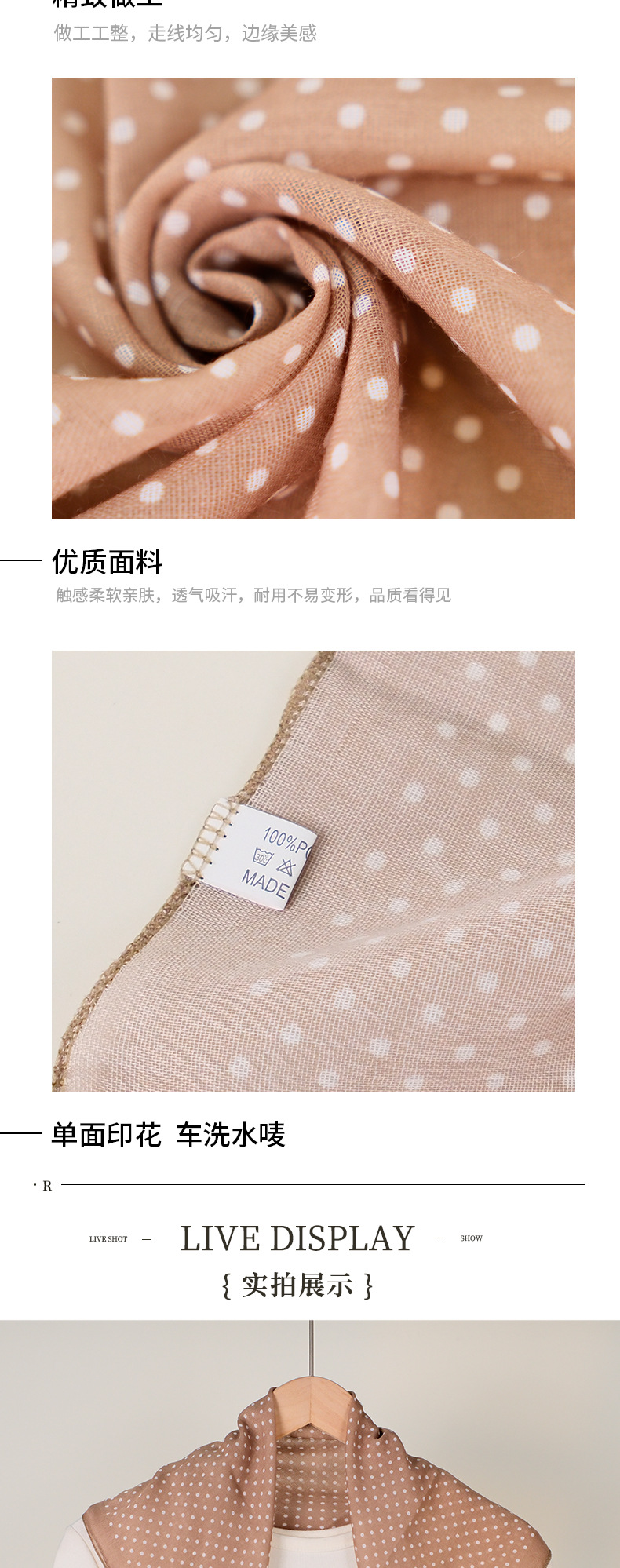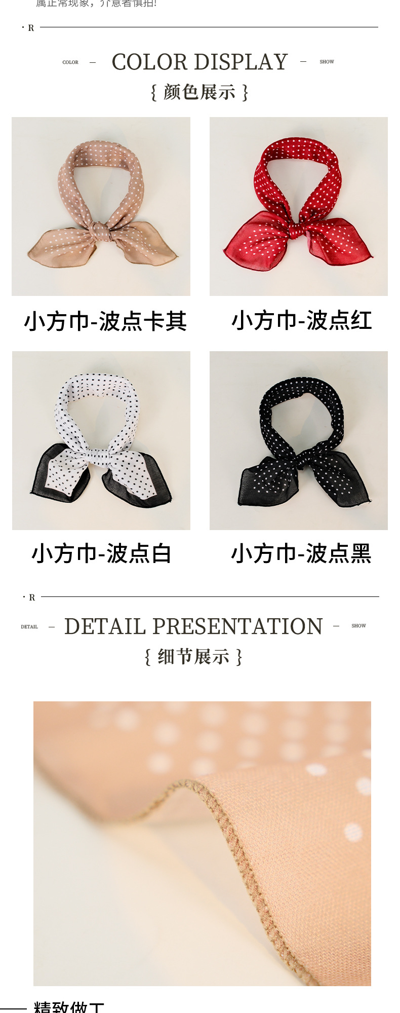 새로운 스타일의 예술적 모조 면 및 린넨 질감의 작은 사각형 스카프, 프렌치 복고풍 폴카 도트 머리띠, 자외선 차단제 마스크, 손목 장식 스카프스토어 가기