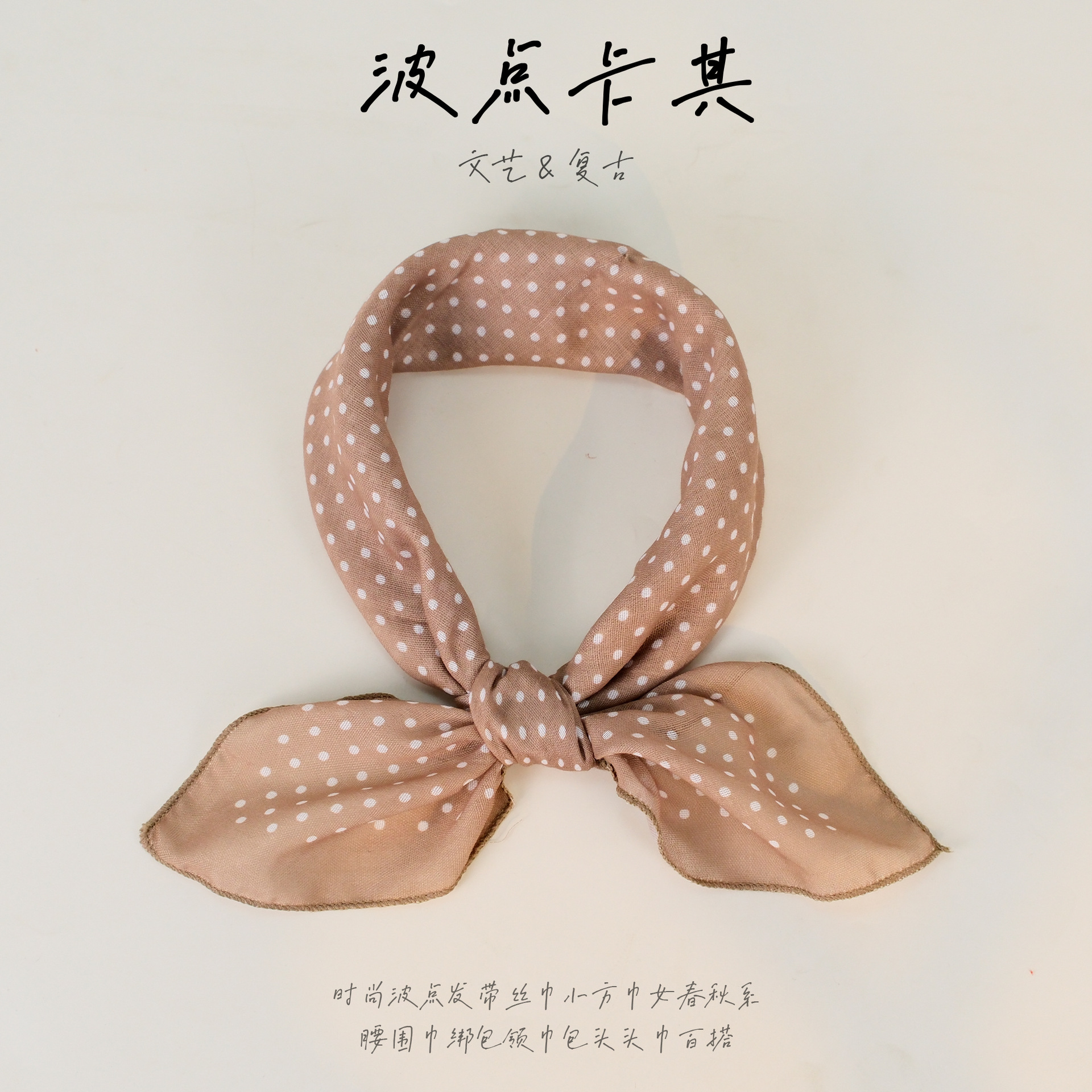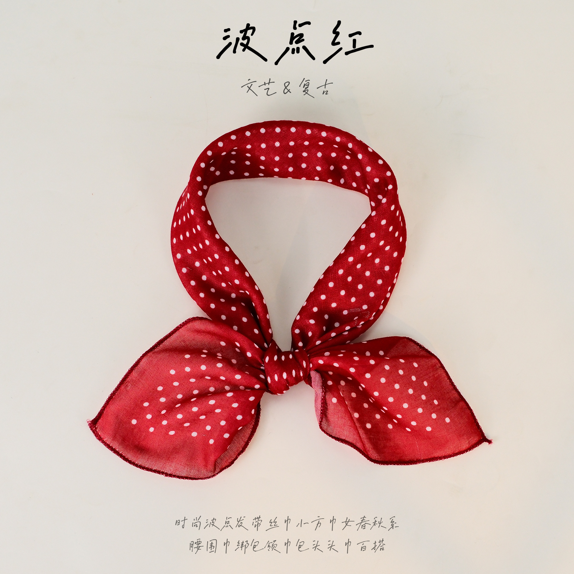 새로운 스타일의 예술적 모조 면 및 린넨 질감의 작은 사각형 스카프, 프렌치 복고풍 폴카 도트 머리띠, 자외선 차단제 마스크, 손목 장식 스카프