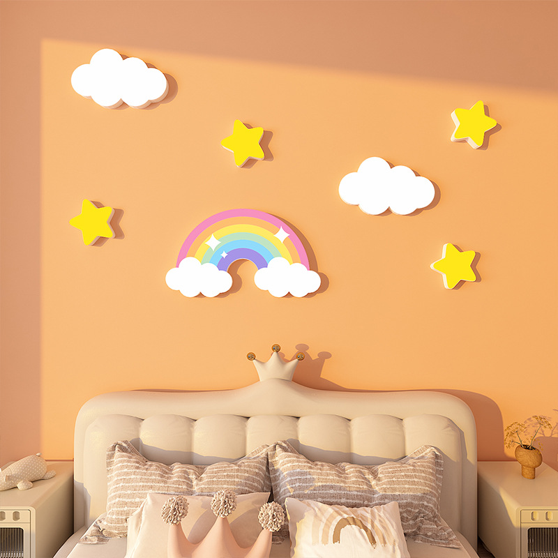구름 작은 공주 방 장식 어린 소녀 어린이 침실 벽 레이아웃 용품 장식품 머리맡 그림 스티커 벽