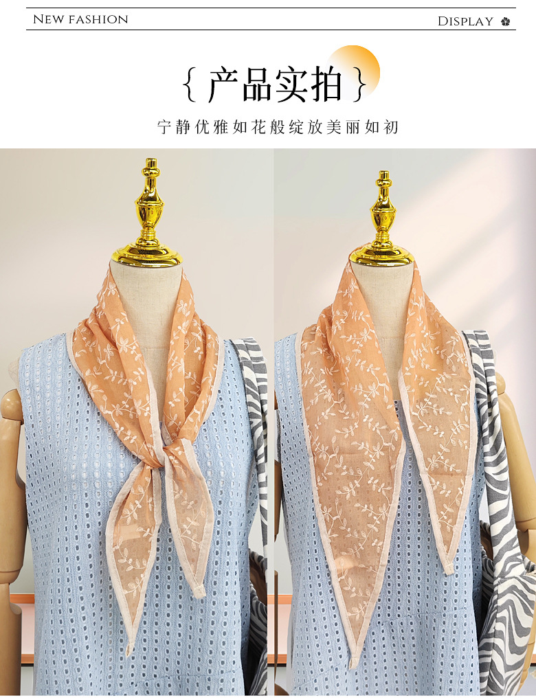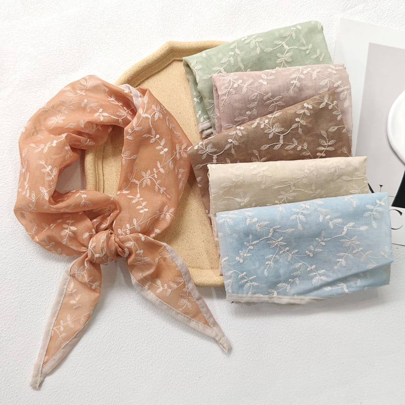 꽃무늬 작은 사각형 스카프, 다용도 목가적 스타일, 예술적 복고풍 다기능 사진 스카프, 고급 작은 스카프