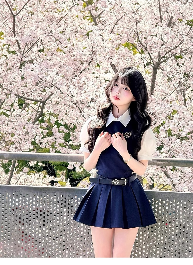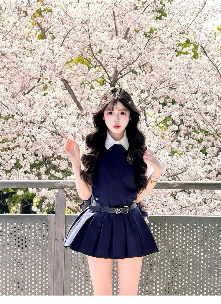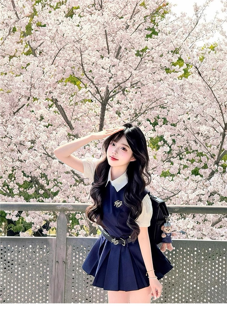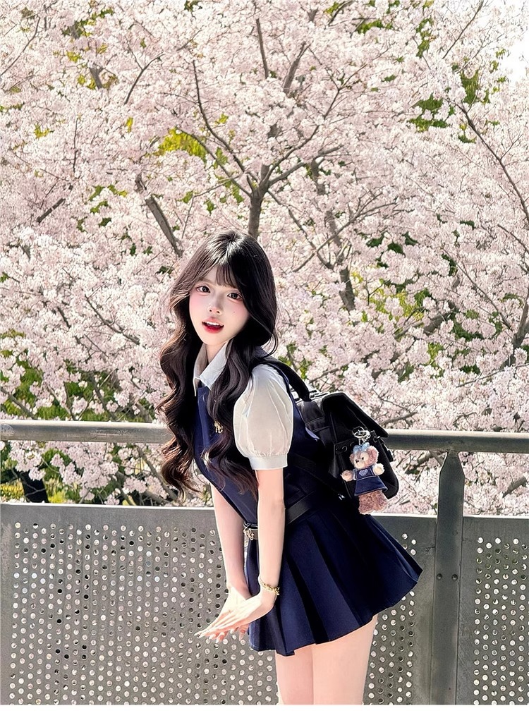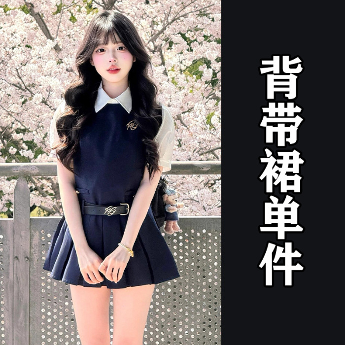 여성을위한 대학 스타일 조끼 드레스 여름 2025 새로운 핫 스타일 작은 사람들을위한 유니폼 정장 짧은 치마