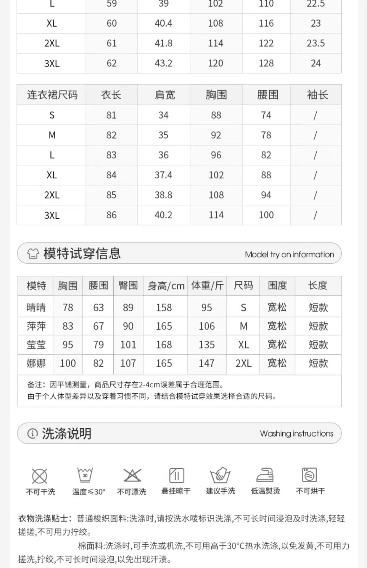 手工测量,尺码可能会存在1-3cm的误差,请以实物为准,因拍摄灯光原因和显示器、光环、环境不同,可能会与图色有所偏差,误差不该成为退换货理由要邮费问题。