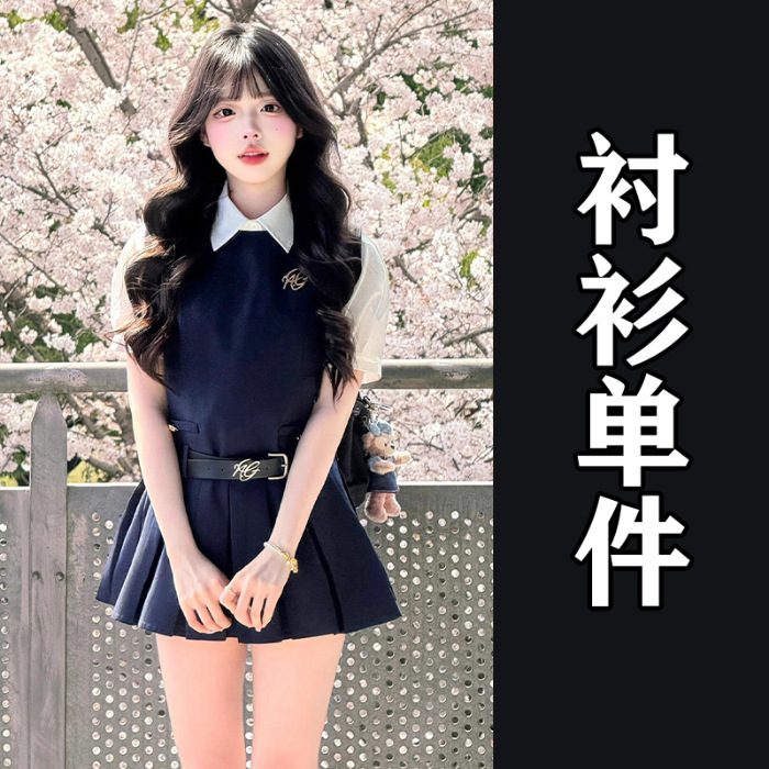 여성을위한 대학 스타일 조끼 드레스 여름 2025 새로운 핫 스타일 작은 사람들을위한 유니폼 정장 짧은 치마스토어 가기