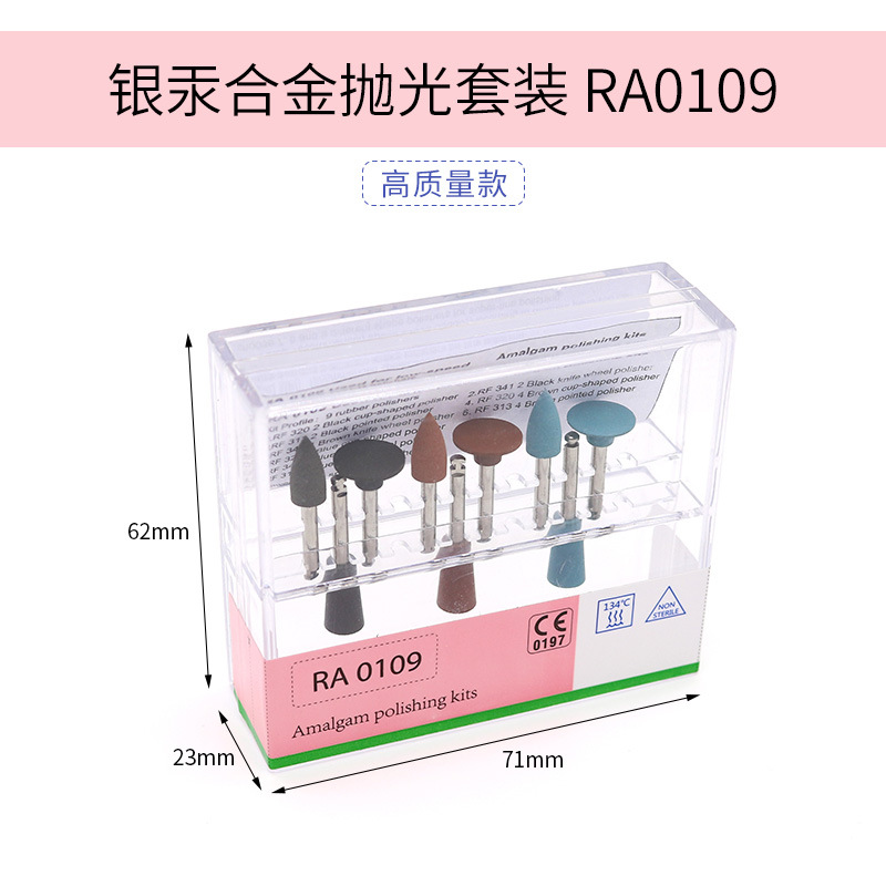 形状 7、8、9 淡蓝硅胶磨头进行精抛,使其表面更光滑、亮泽。