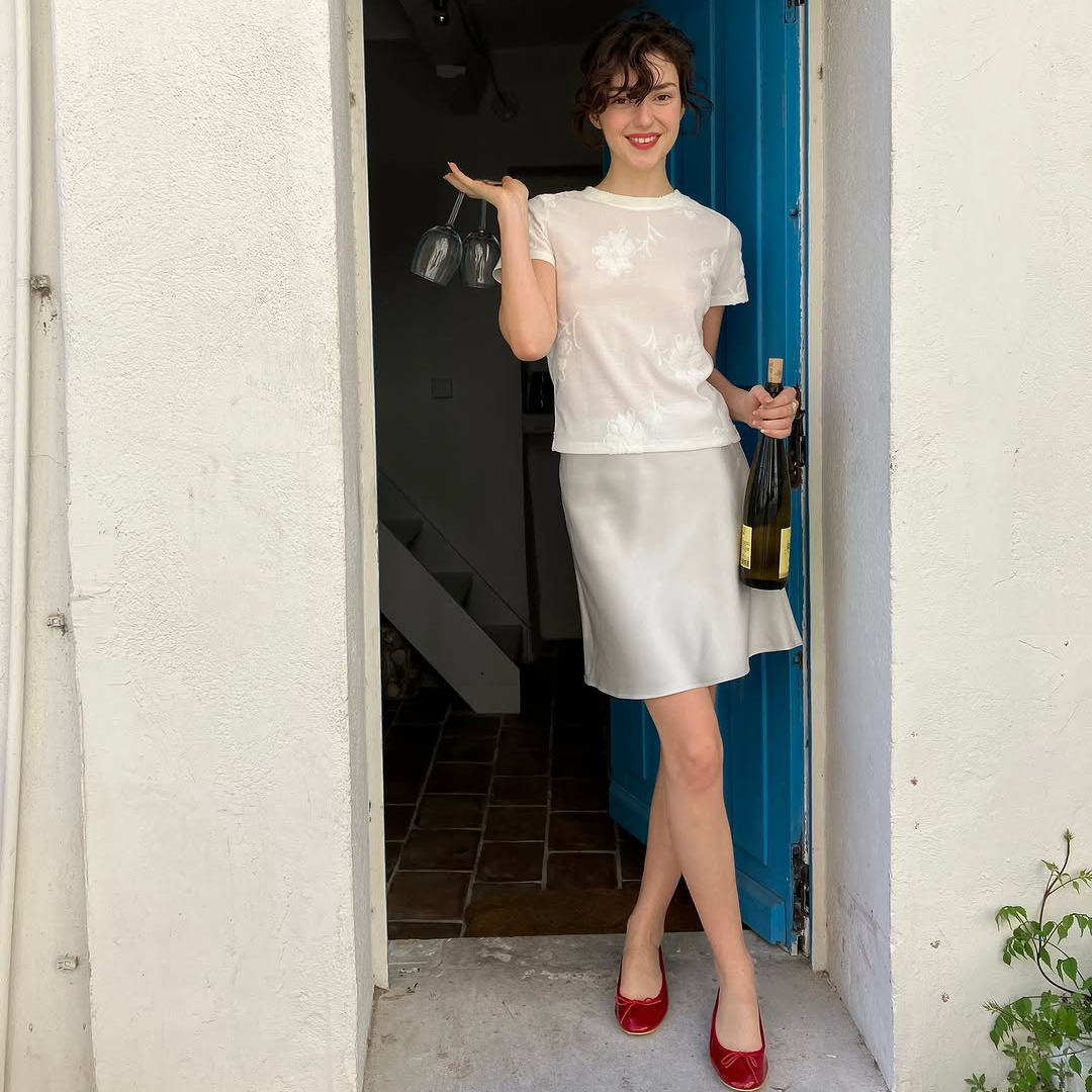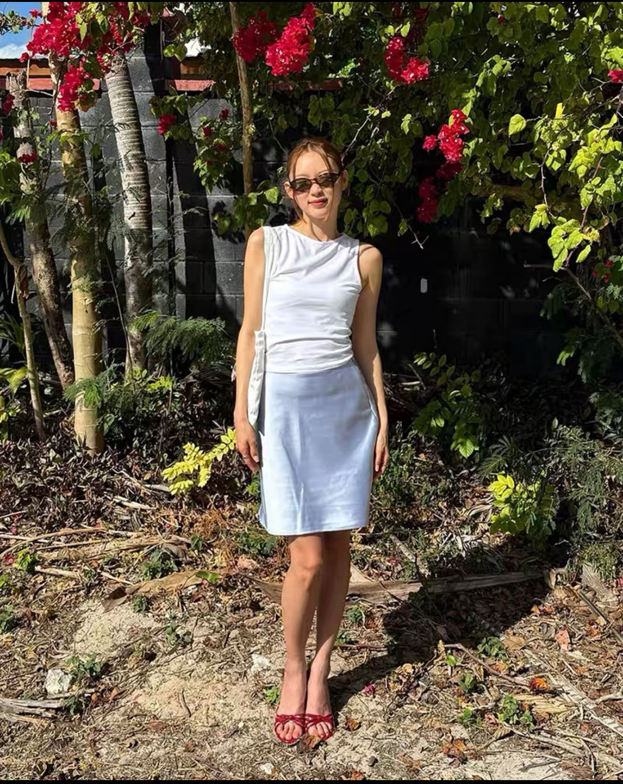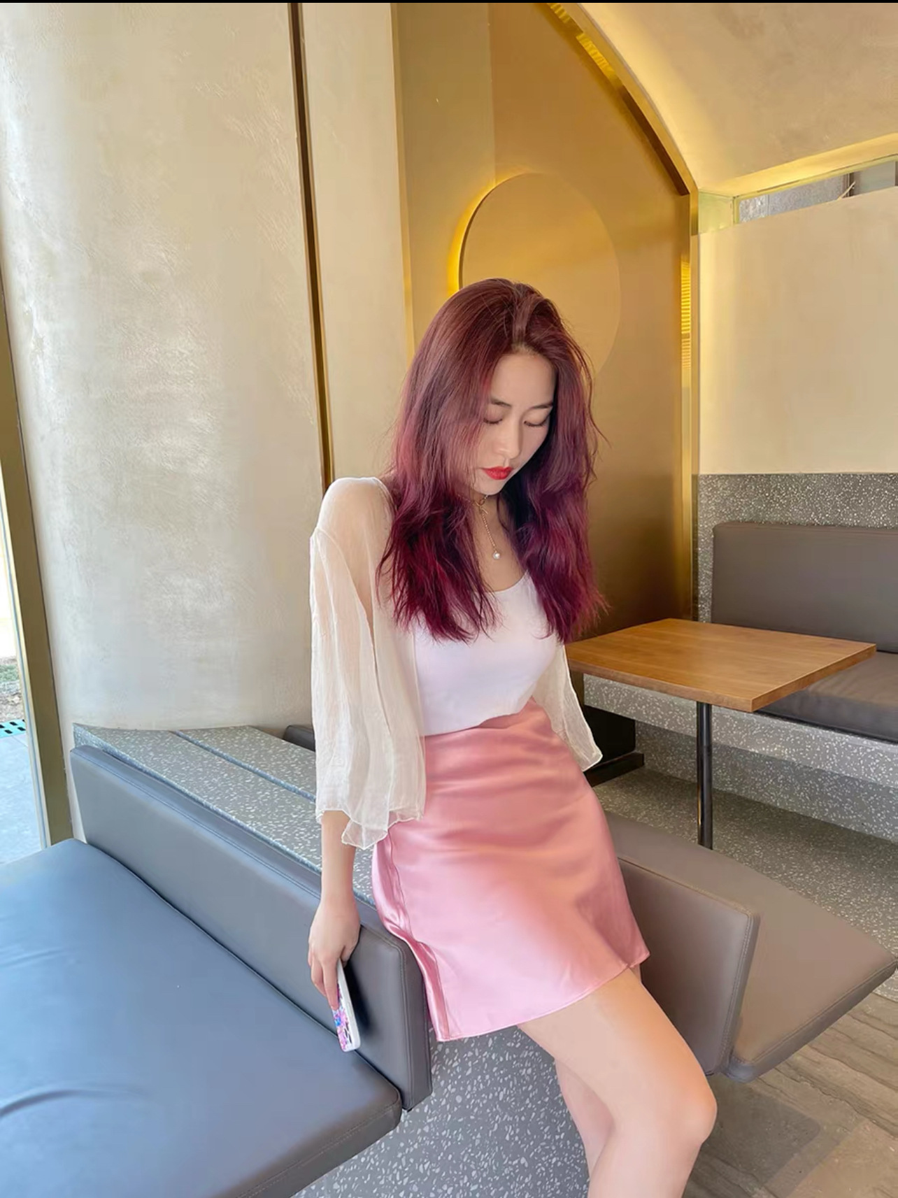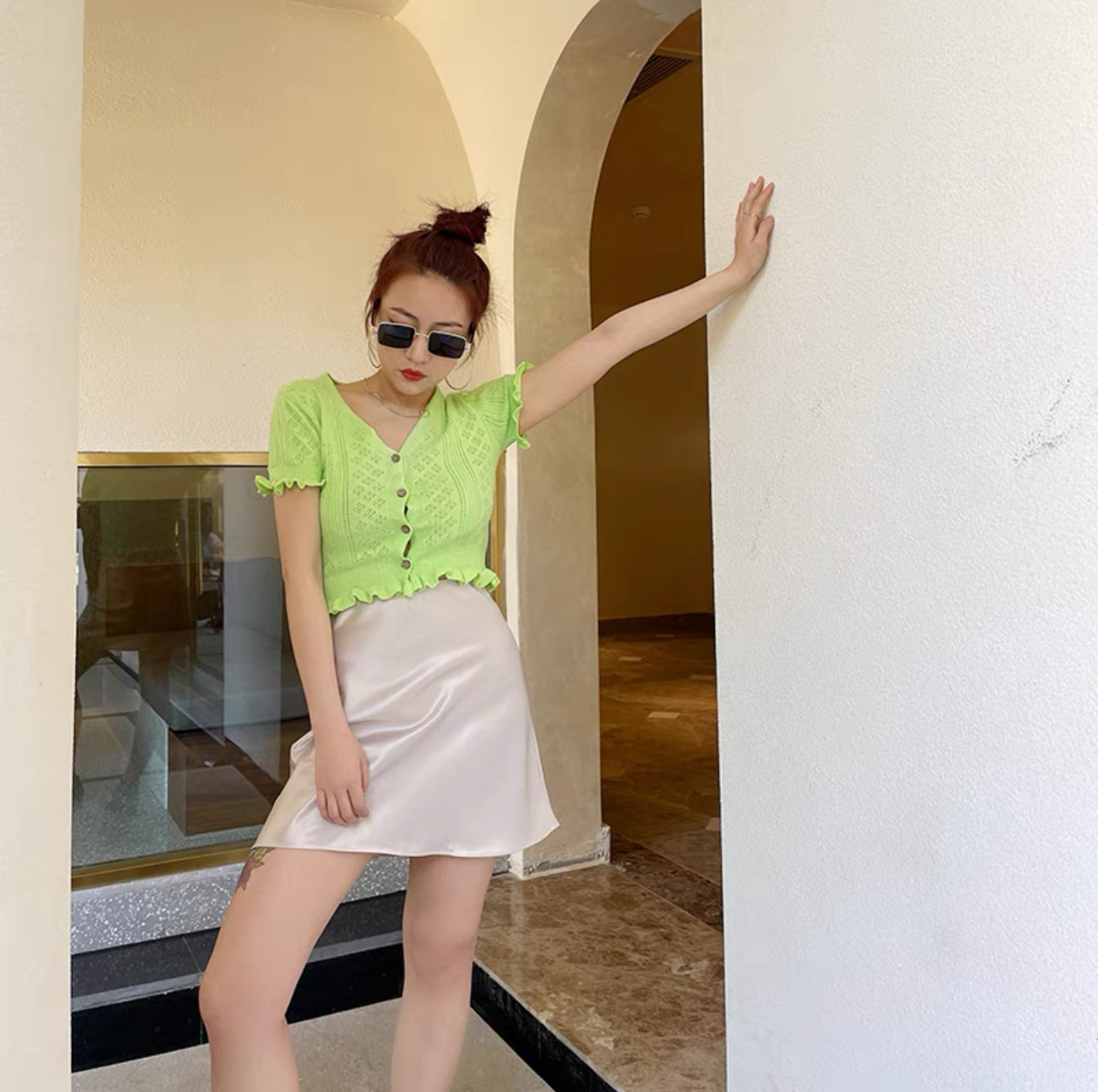 网球裙半身裙短裙a字裙高腰 进口醋酸真丝斜裁松紧腰缎面荷叶边裙