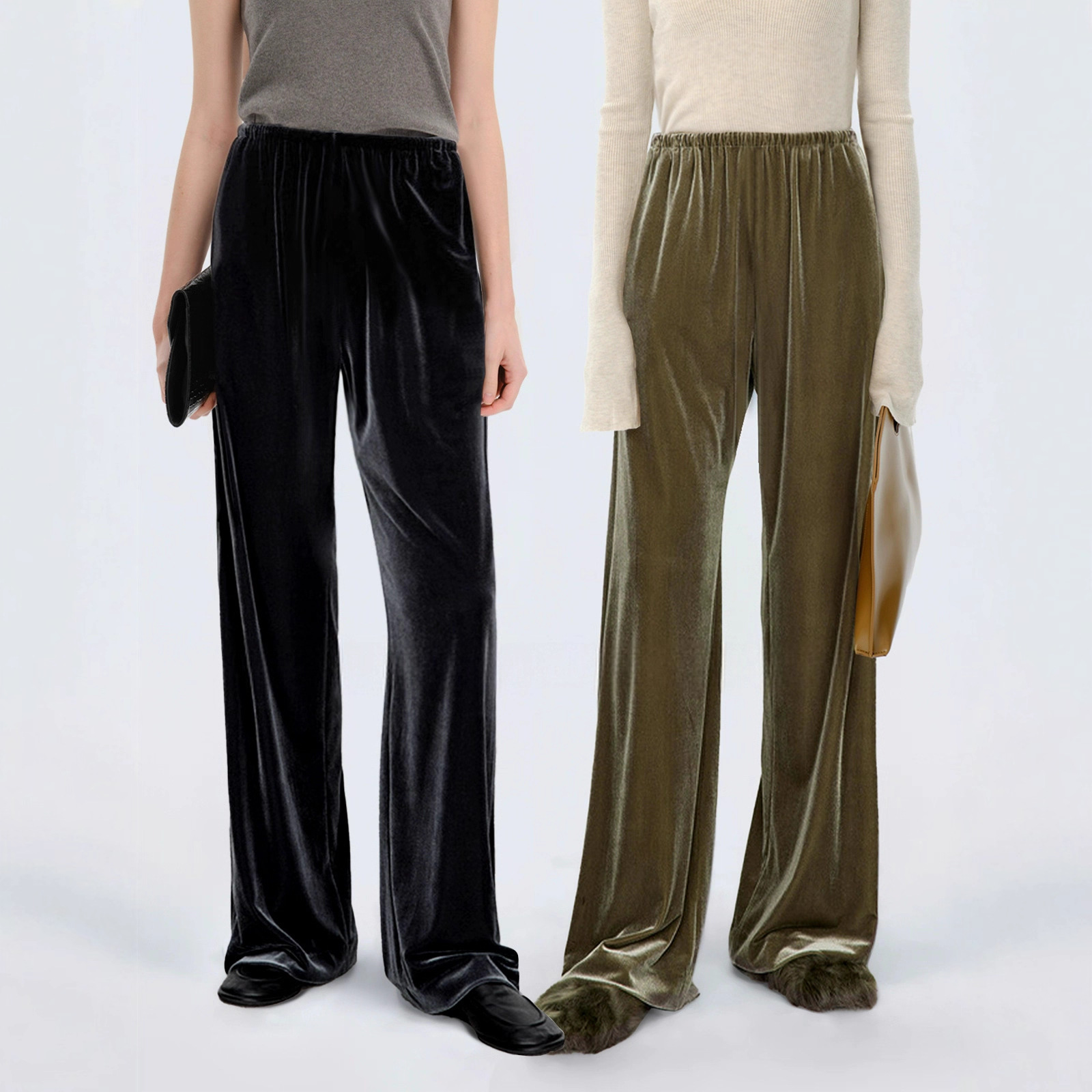 2025秋冬新款超细丝绒高腰阔腿裤空气长裤女百搭显瘦松紧腰休闲裤