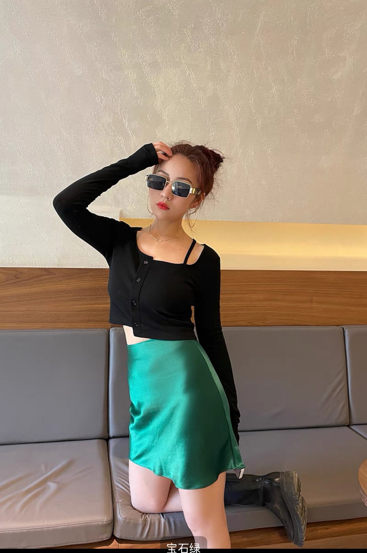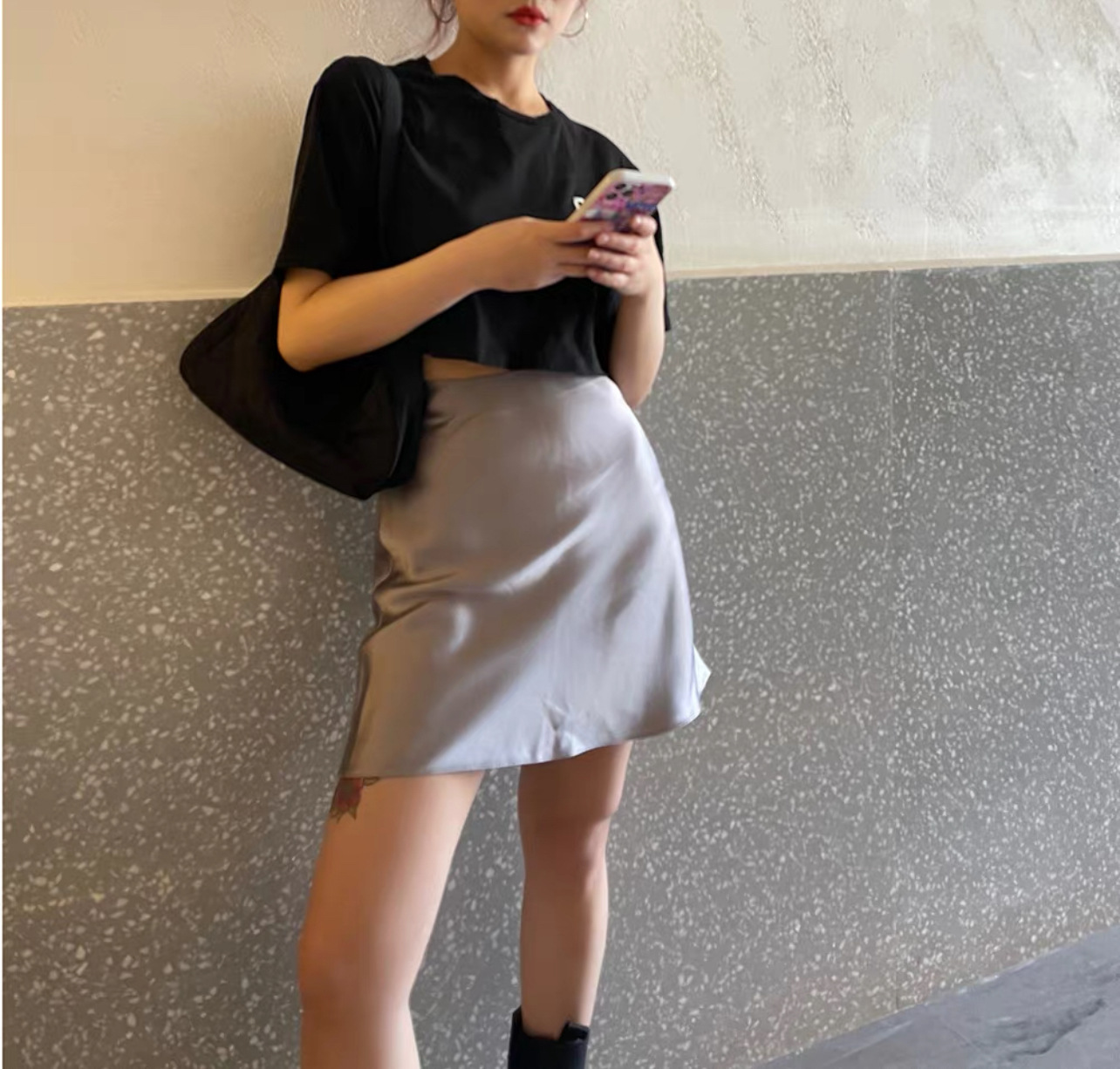 重磅三醋酸缎面半裙小个子松紧腰a字高腰短裙鱼尾短款半身裙女秋