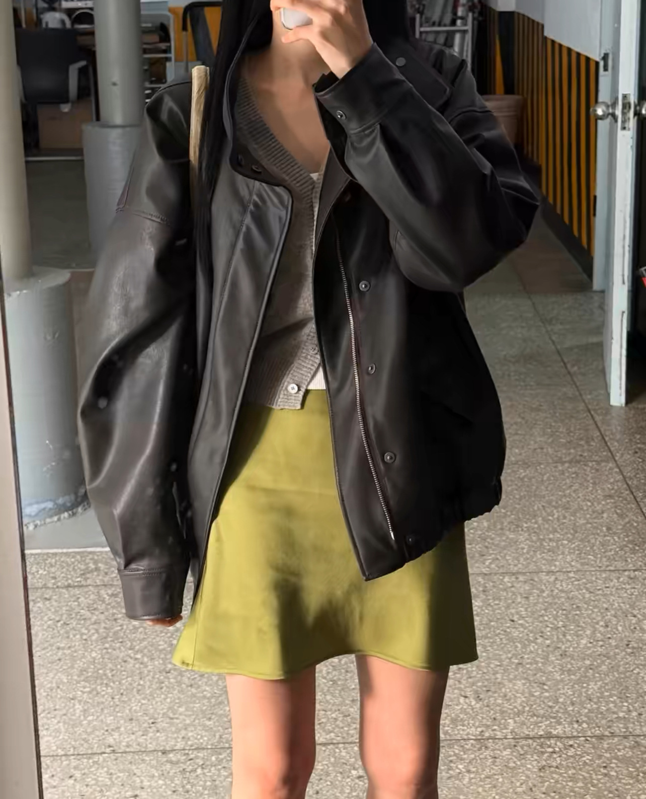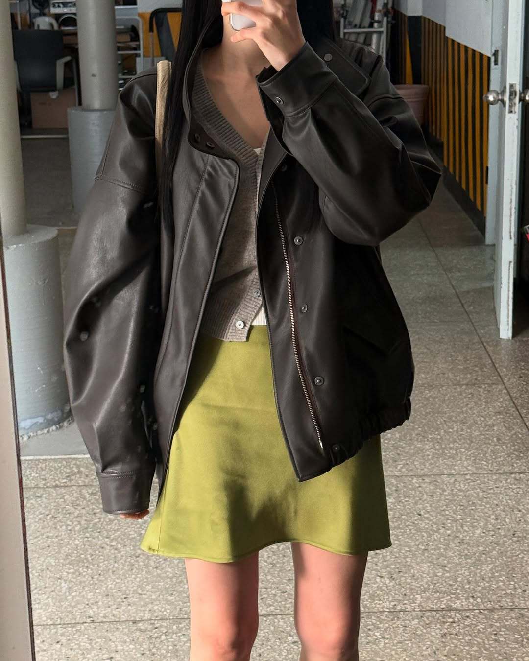 휴가를 위한 헤비급 수입 삼아세테이트 스커트 과일 그린 새틴 광택 신축성 있는 허리 바이어스 컷 A라인 피쉬테일 미니 스커트