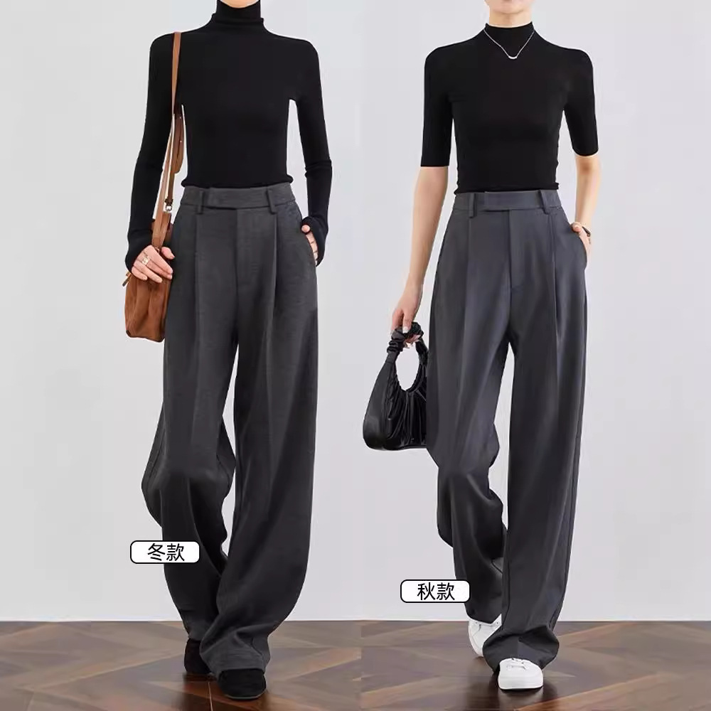 醋酸羊毛加长西装裤高腰直筒秋冬拖地宽松加厚阔腿裤西裤垂感休闲
