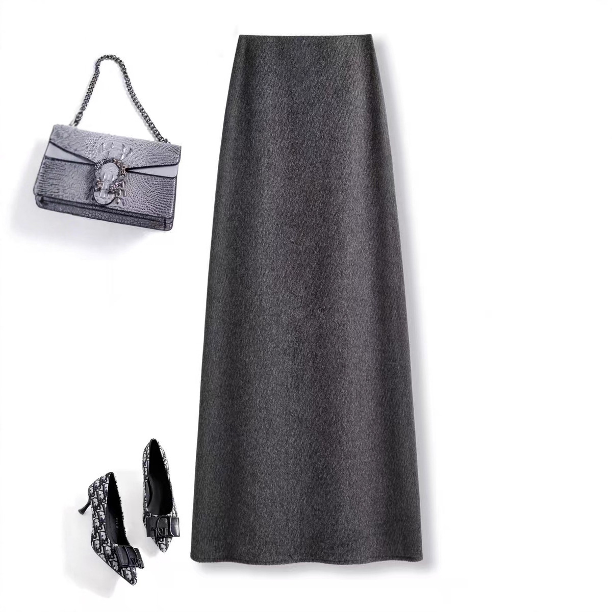 秋冬新款软糯羊毛羊绒半身裙垂感斜裁拖地长裙高腰松紧半身长裙女