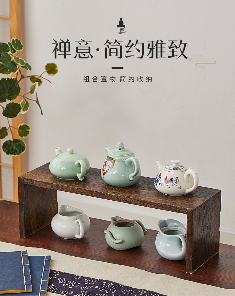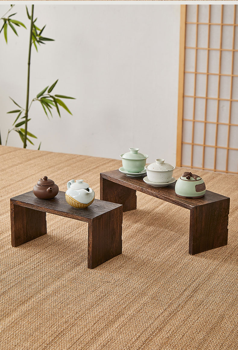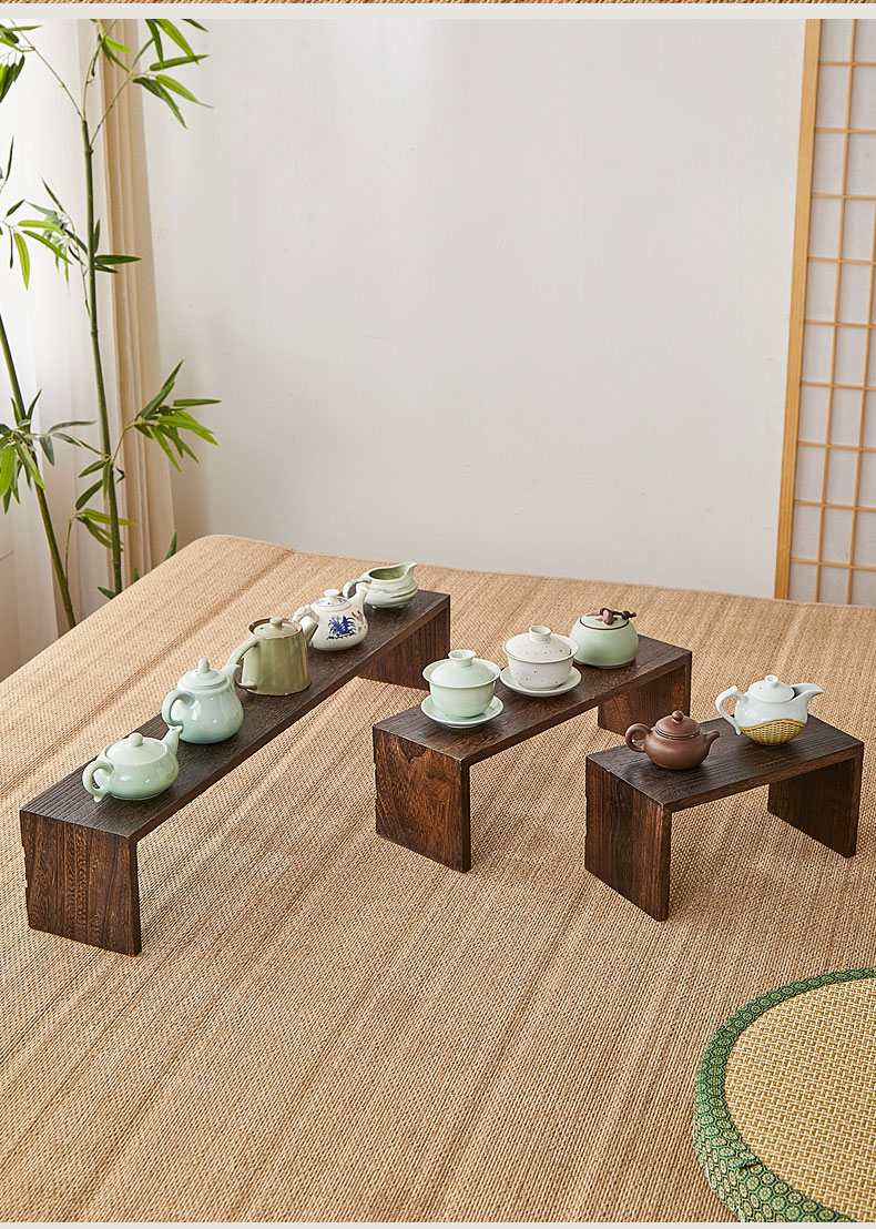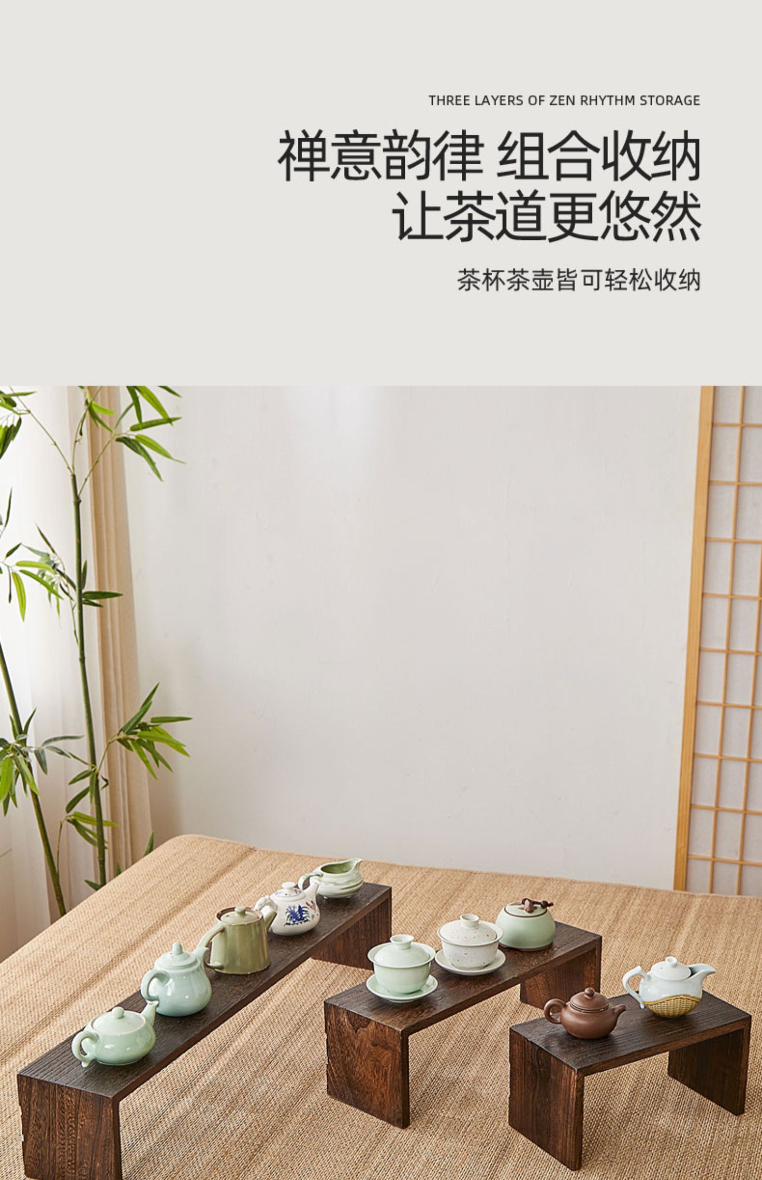 단단한 나무 테이블 작은 Bogu 랙 보라색 점토 주전자 차 세트 찻잔 보관 랙 거실 찻집 데스크탑 보관 랙 차 트레이스토어 가기