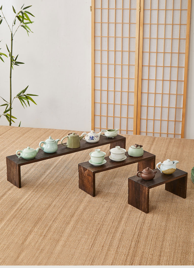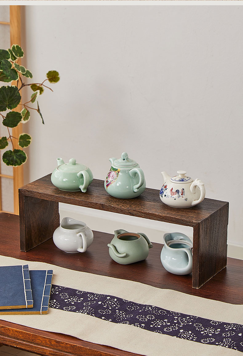 단단한 나무 테이블 작은 Bogu 랙 보라색 점토 주전자 차 세트 찻잔 보관 랙 거실 찻집 데스크탑 보관 랙 차 트레이
