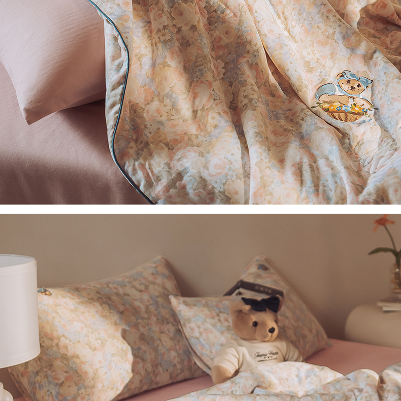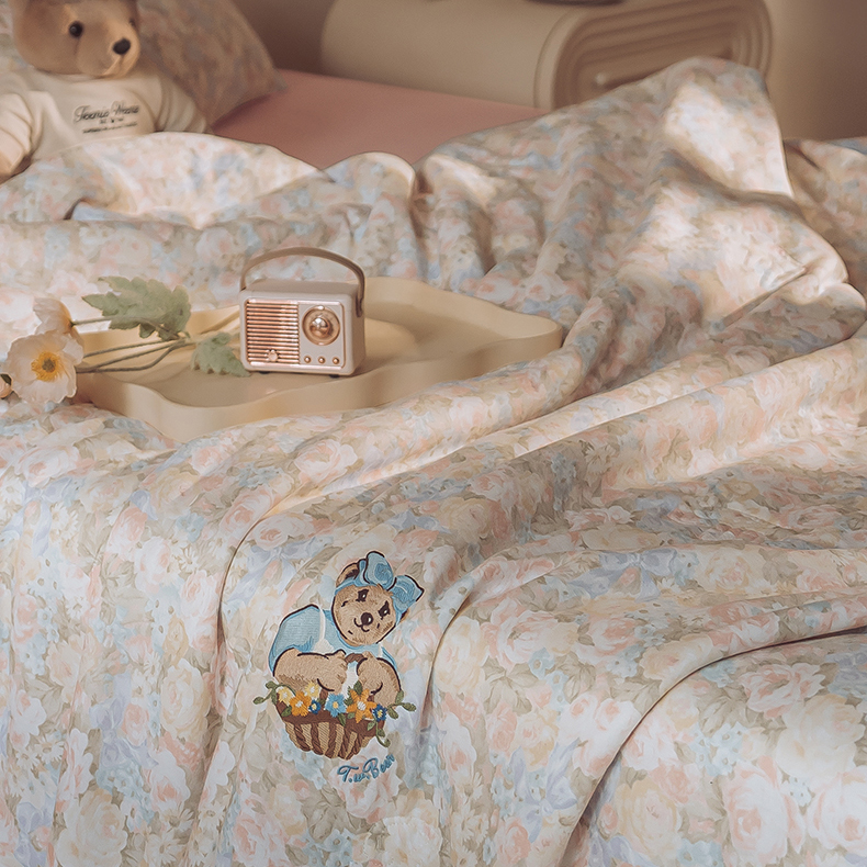◖ TeenieWeenie 베어 더블 레이어 거즈 여름 이불 어린이 에어컨 이불 순수 코튼 여름 시원한 이불 기계 세탁 가능 이불스토어 가기