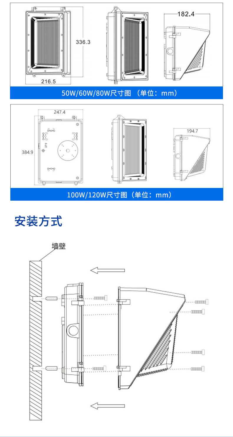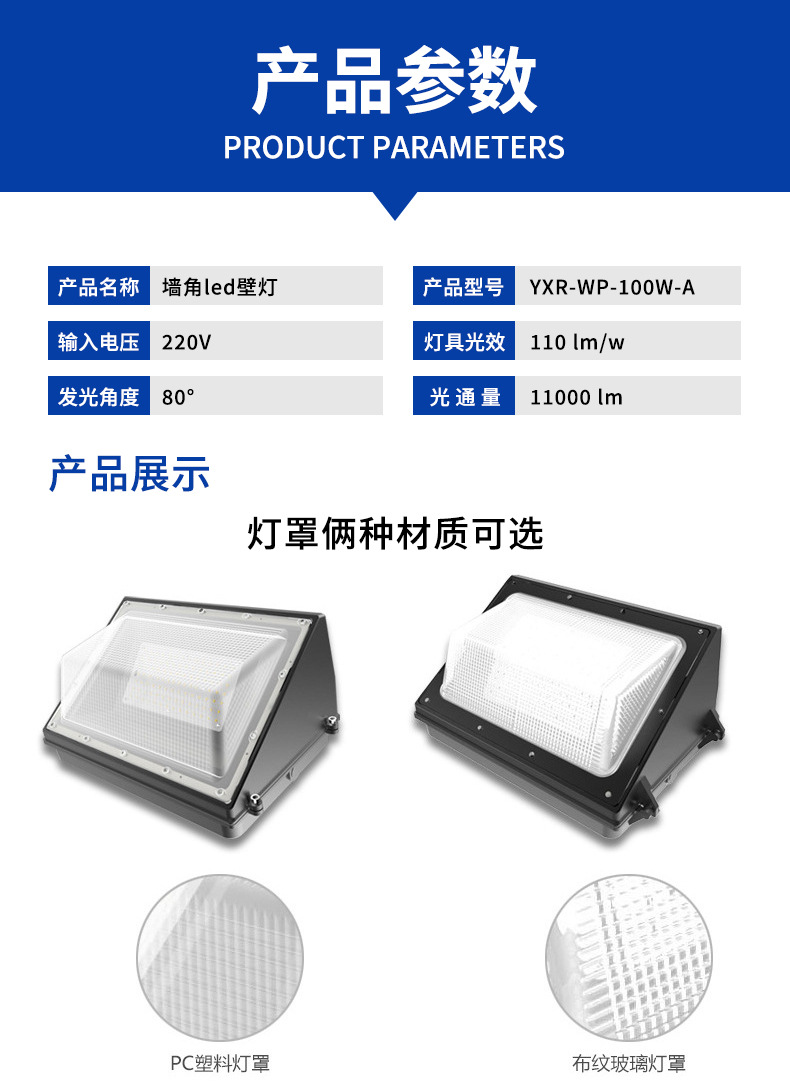 고출력 삼각형 벽 램프 야외 유럽과 미국의 공장 건물 보행자 통로 방수 벽 코너 LED 벽 램프