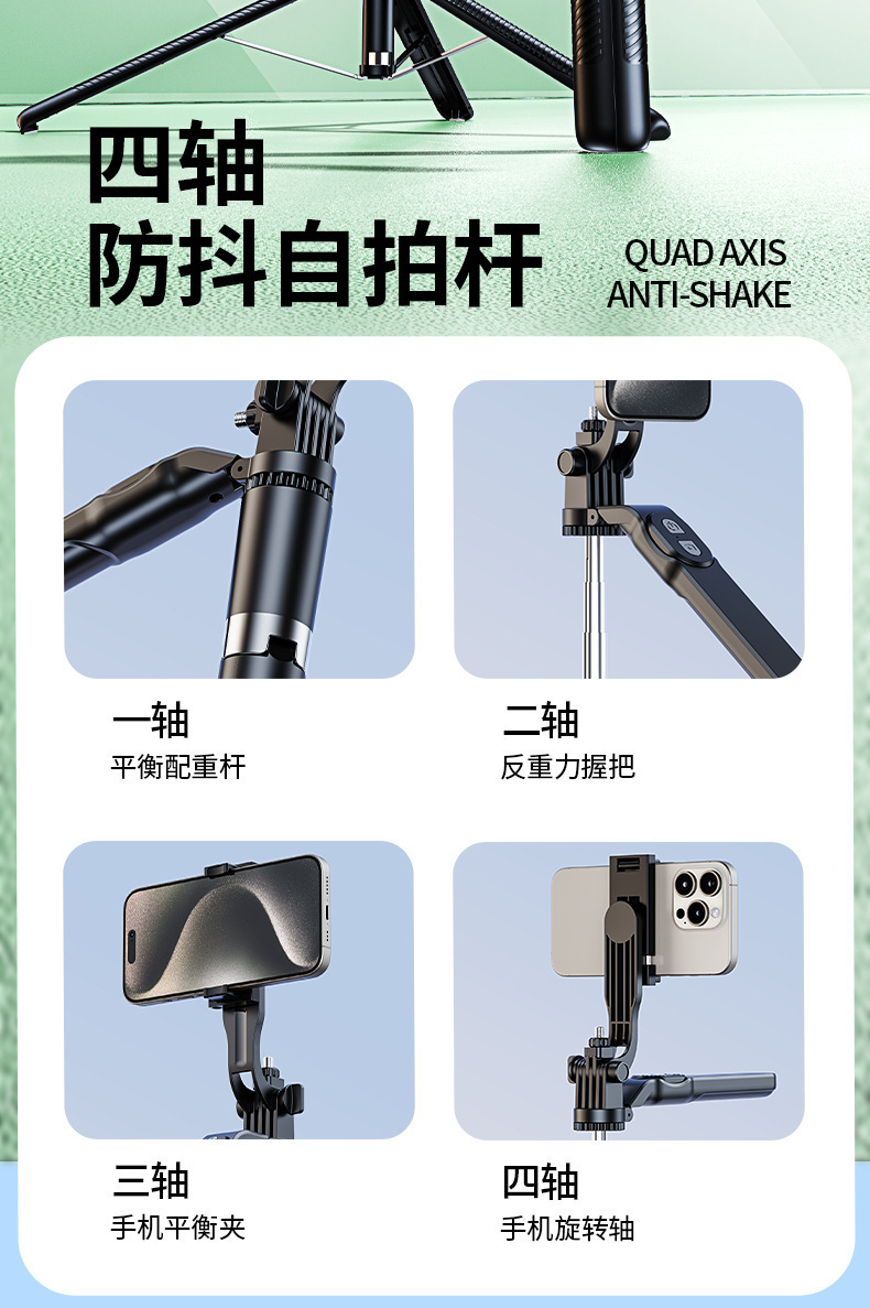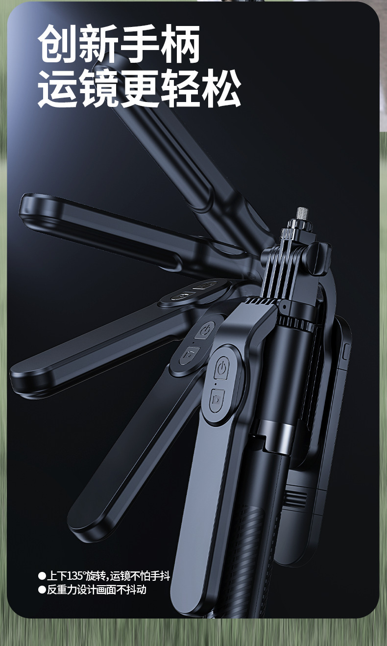 여행용 휴대용 휴대폰 셀카봉, 4축 손떨림 방지, 접이식 삼각대, 라이브 사진 유물, 블루투스 셀카봉