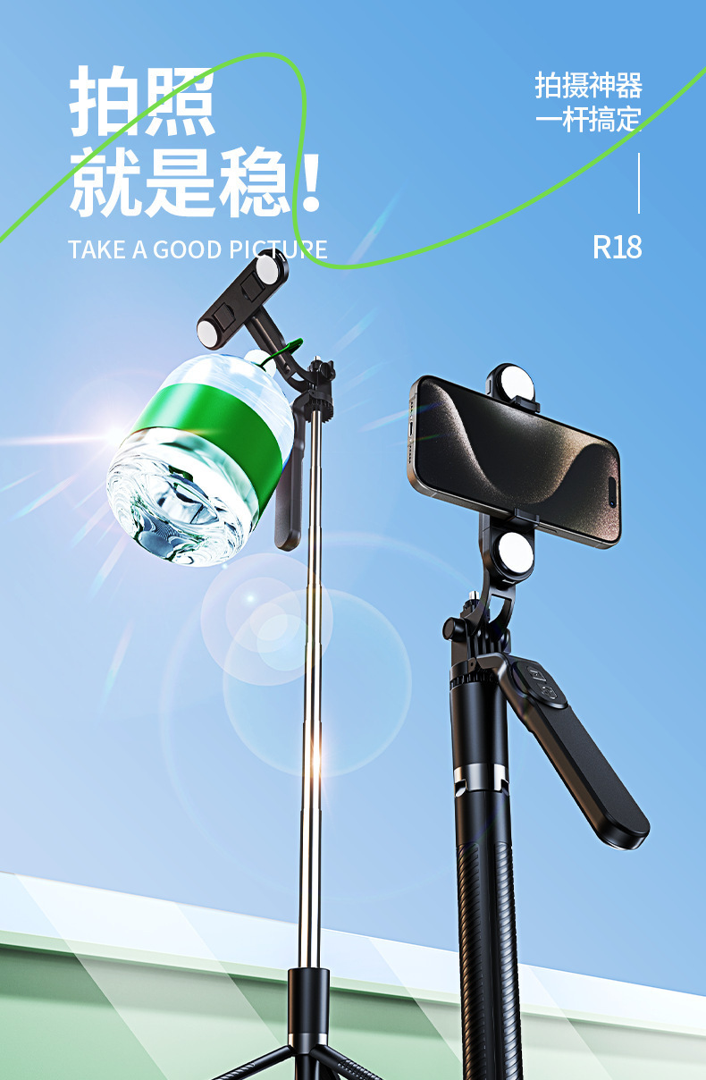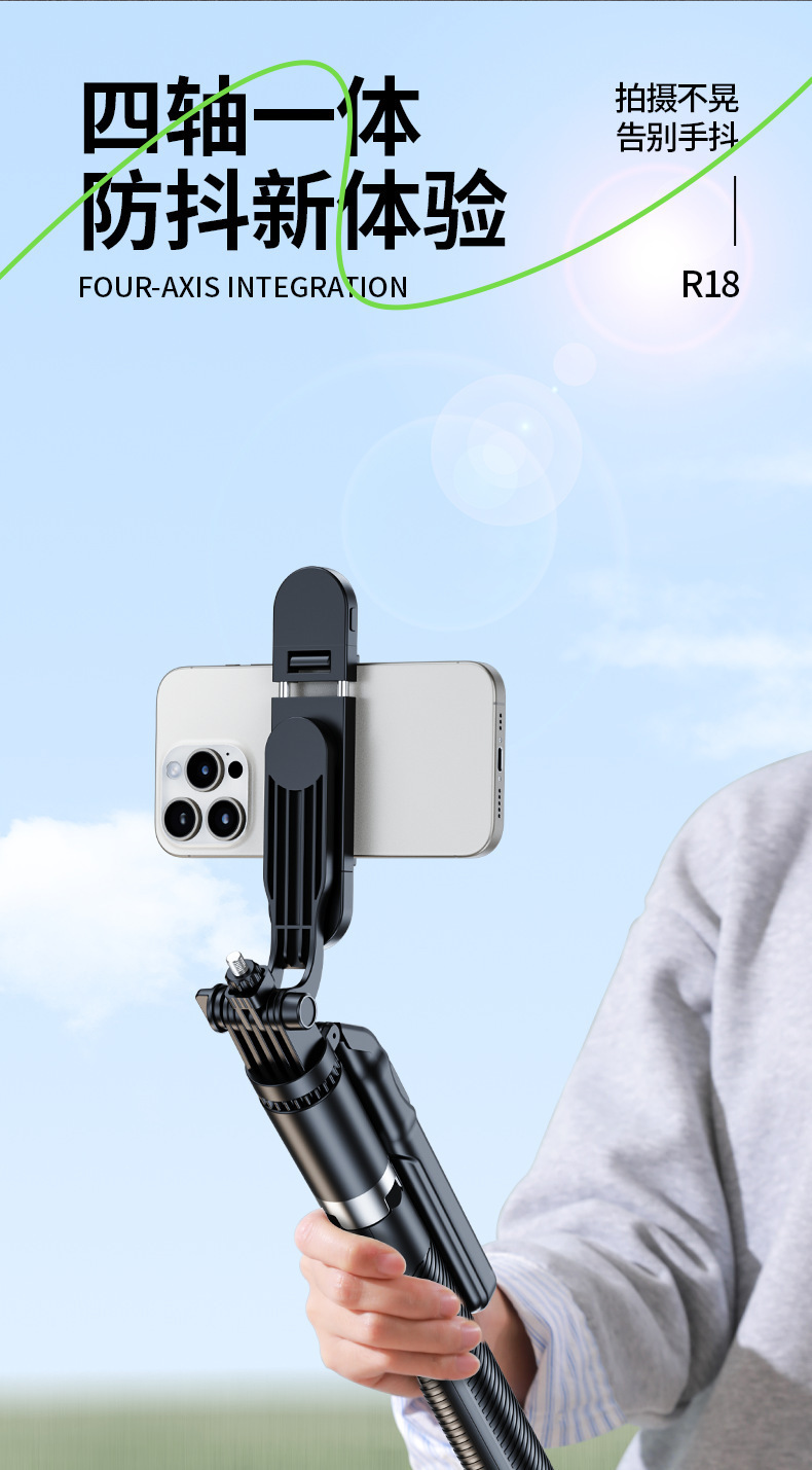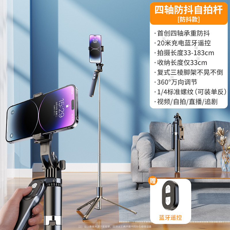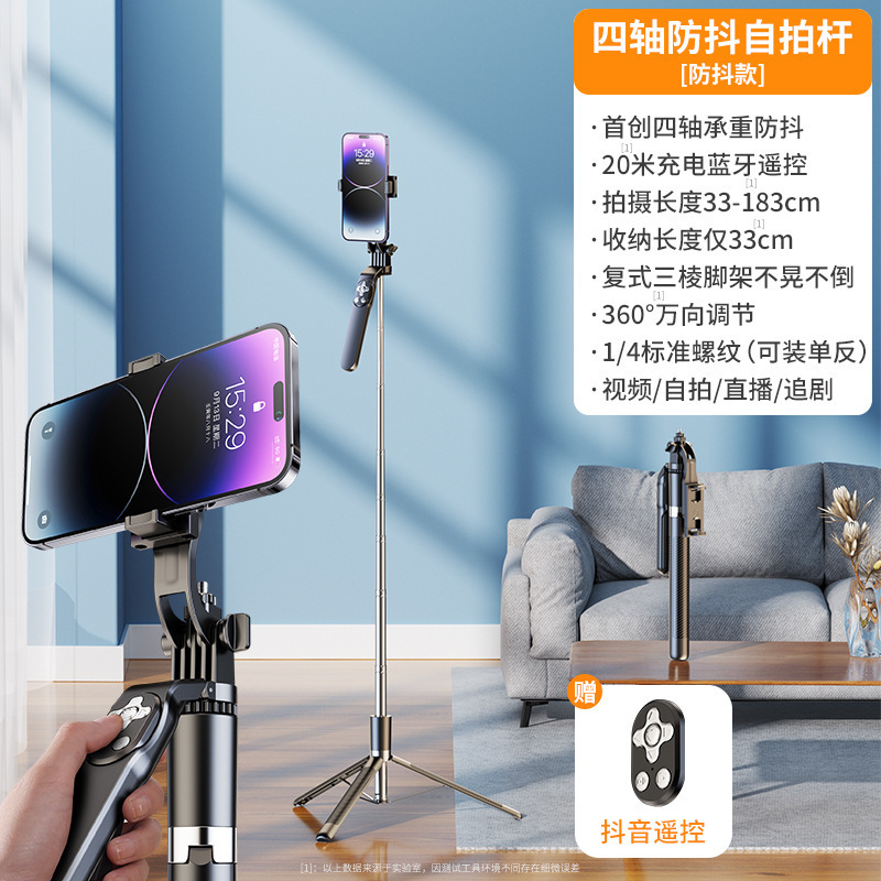 • 1.8m 블랙 [4축 손떨림 방지 + 안정적인 삼각대 지지대] + 20m 충전 Douyin 리모콘