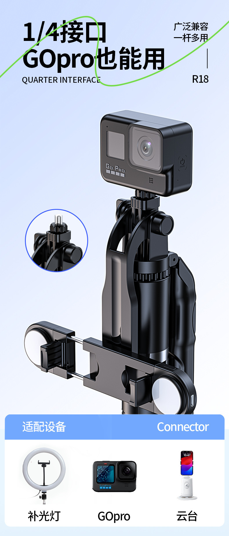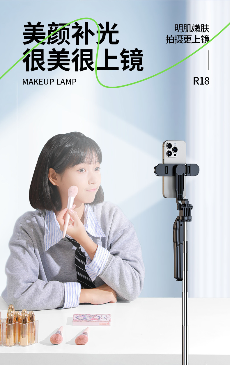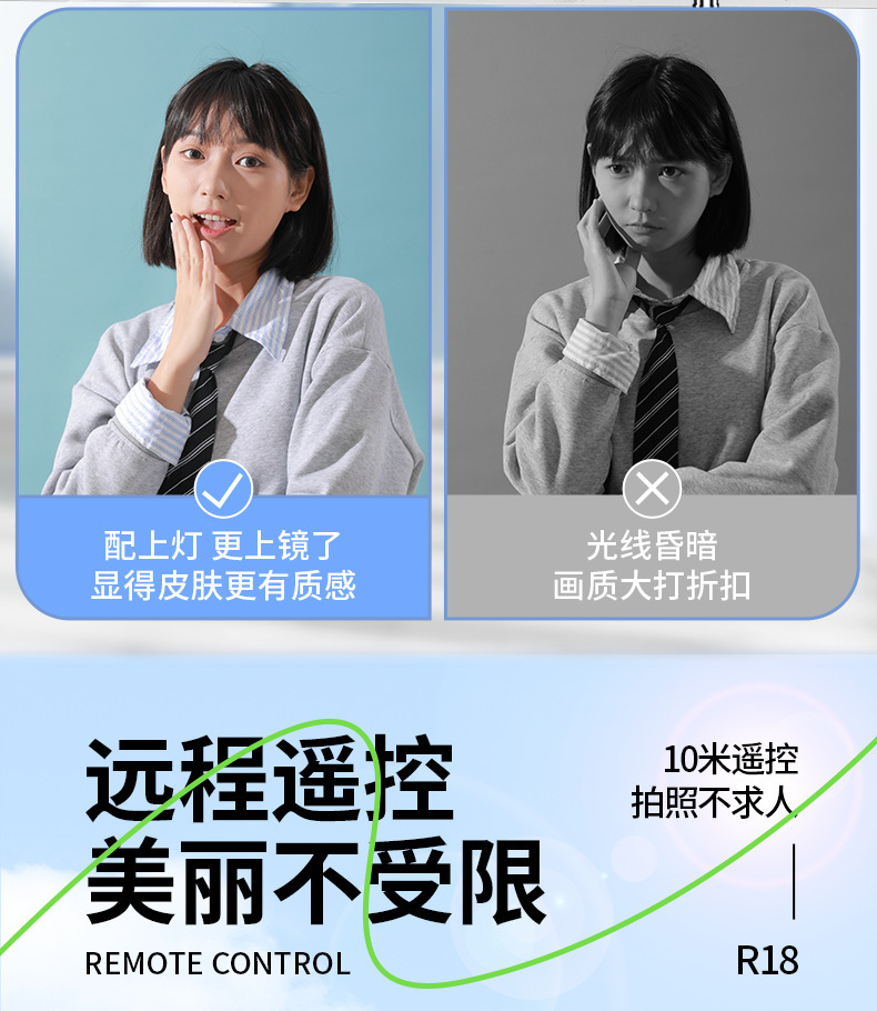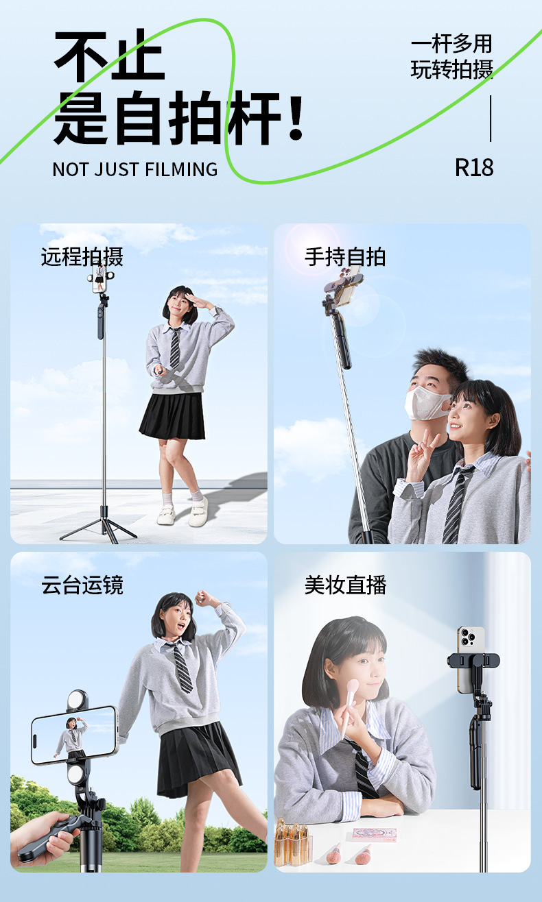 • 1.8m 블랙 [4축 손떨림 방지 + 안정적인 삼각대 지지대] + 20m 충전 Douyin 리모콘