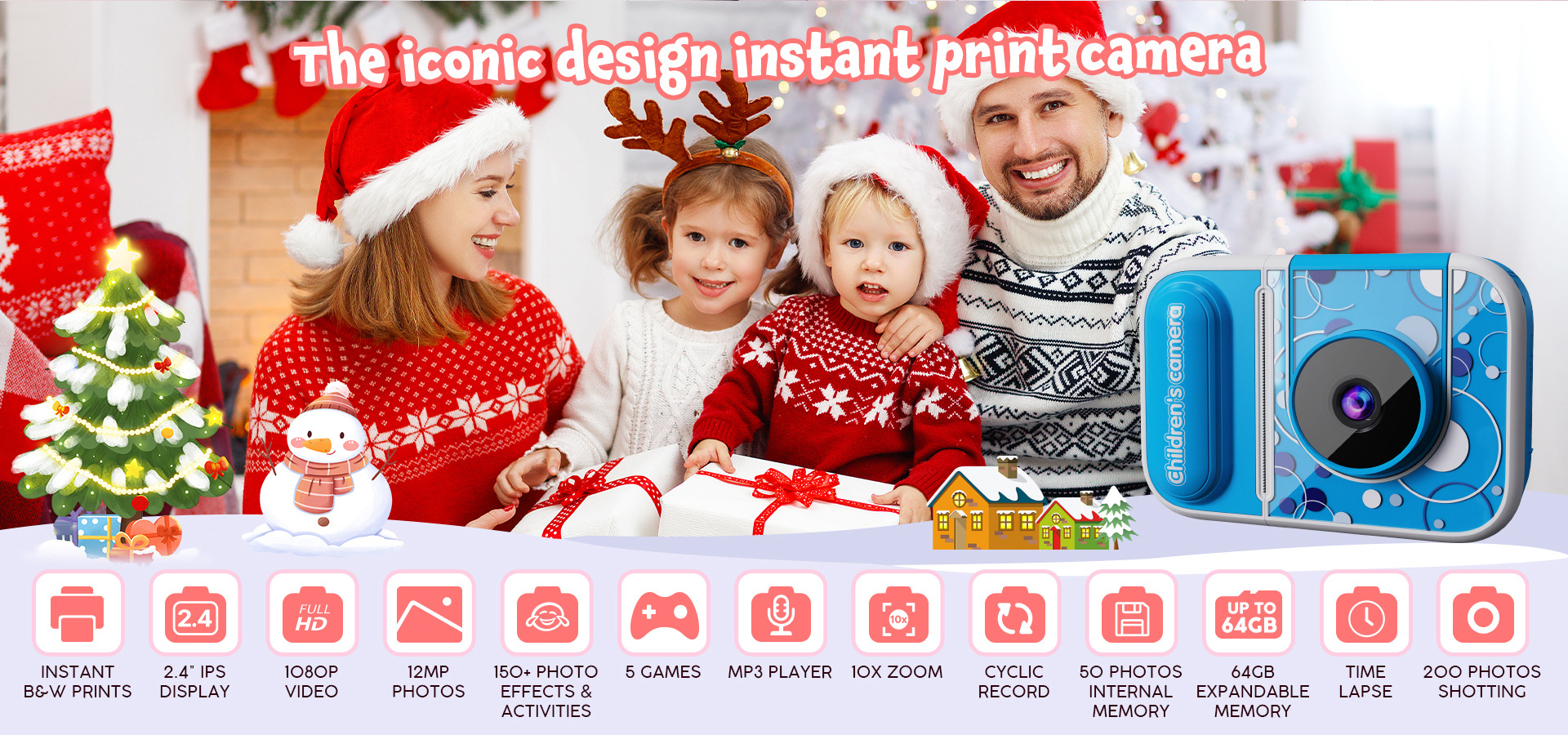 폴라로이드 카메라는 휴대용으로 사용할 수 있으며 사진을 찍을 수 있는 양면형입니다. 국경 간 어린이 만화 고화질 디지털 인쇄 카메라입니다.스토어 가기