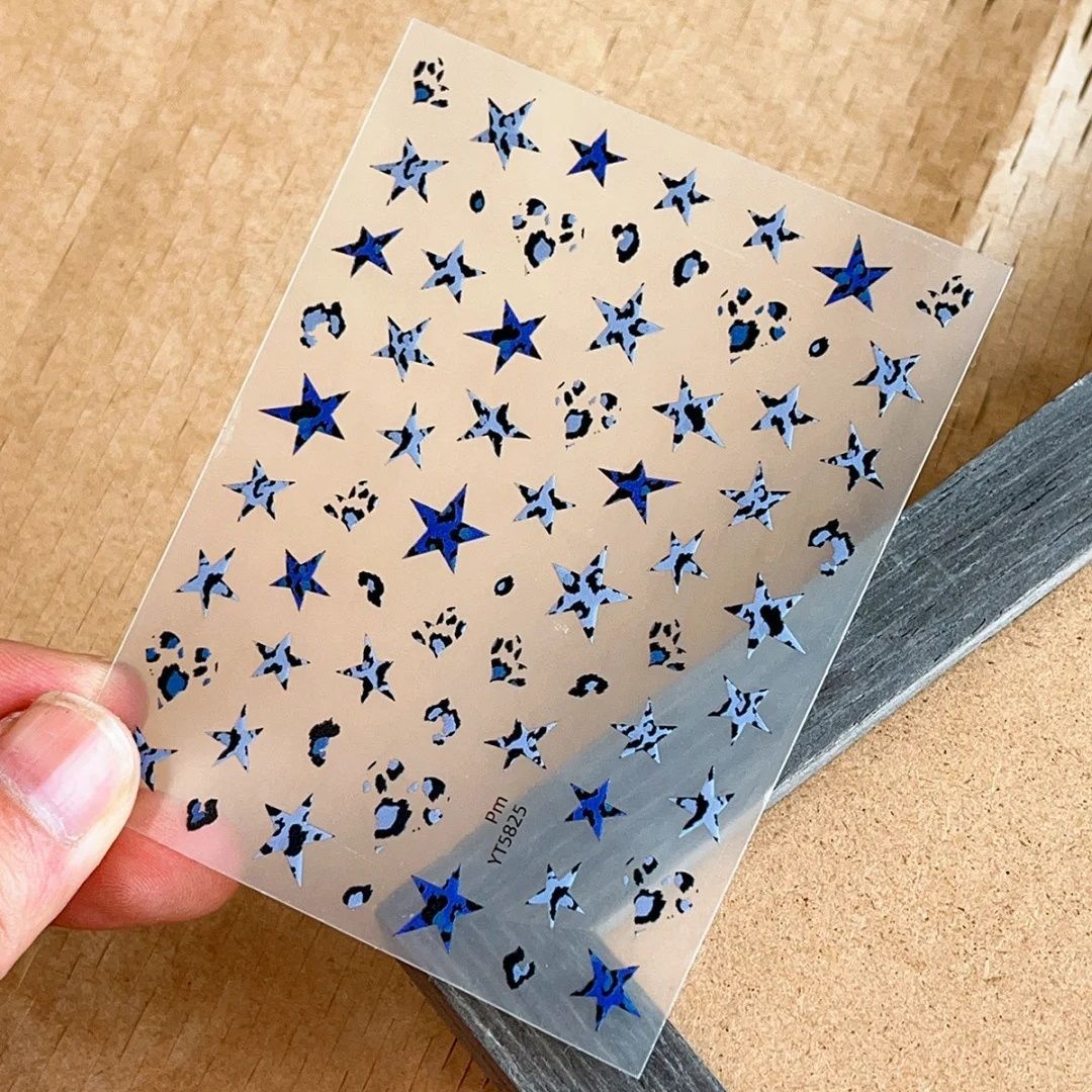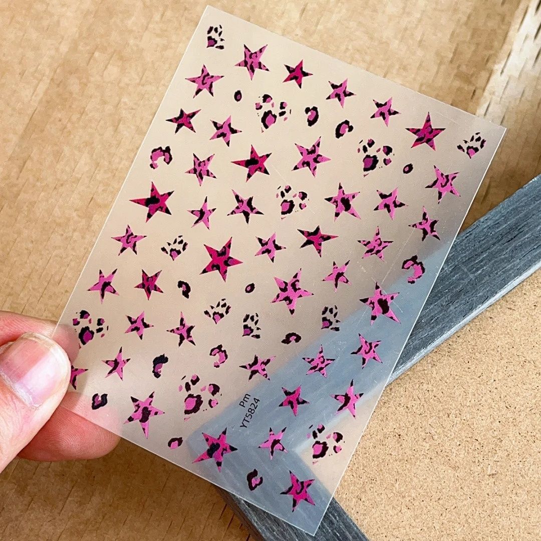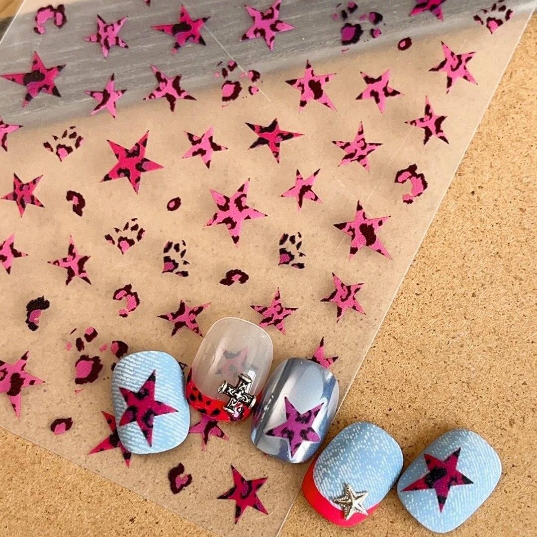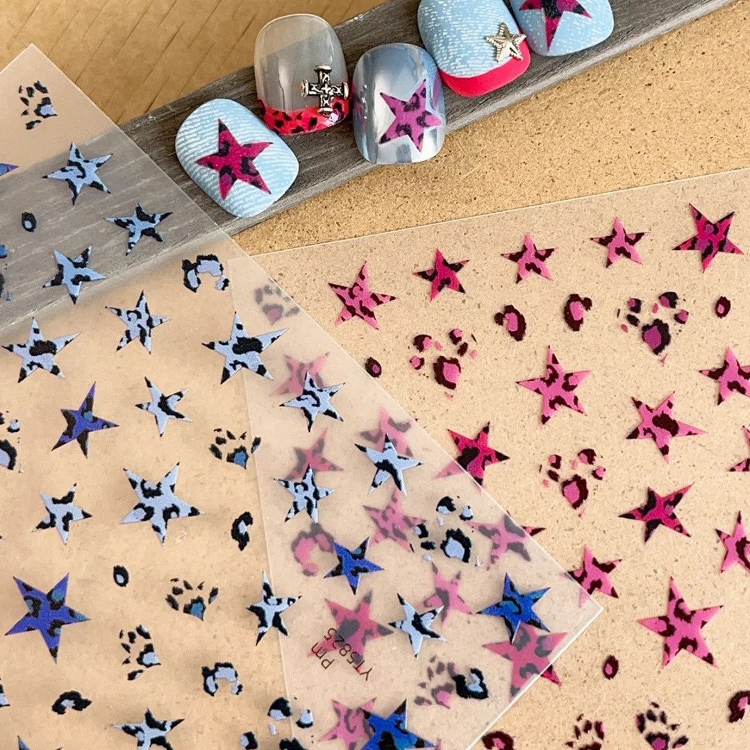 새로운 레오파드 프린트 다섯개 별 얇고 튼튼한 네일 아트 스티커 달콤하고 시원한 핫 소녀 y2k 스타 밀레니엄 스타일 diy 네일 스티커 접착제스토어 가기