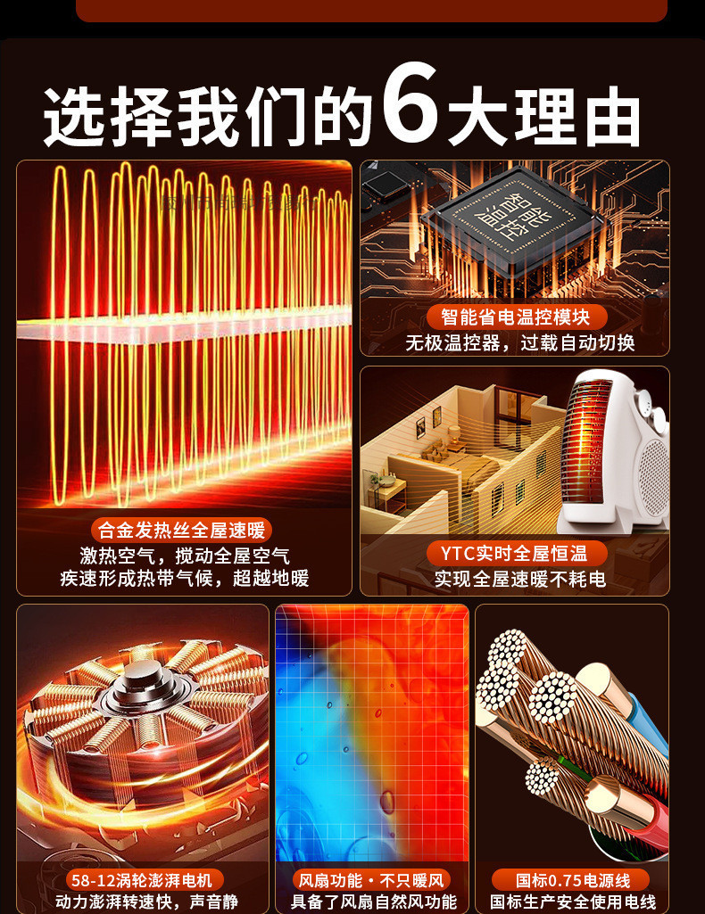 소형 휴대용 히터 2000W 고출력 가정용 히터, 사무실용 겸용 전기 히터
