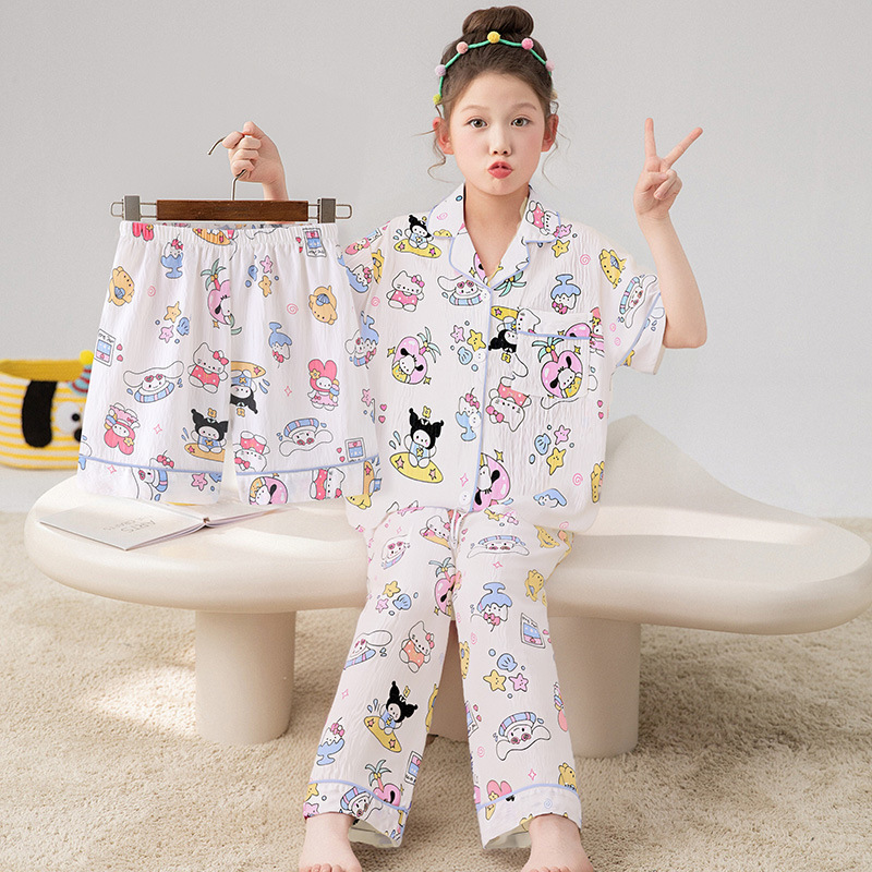 三件套儿童睡衣夏季女童云朵棉薄款短袖凯蒂猫女孩2025新款家居服