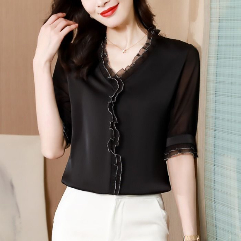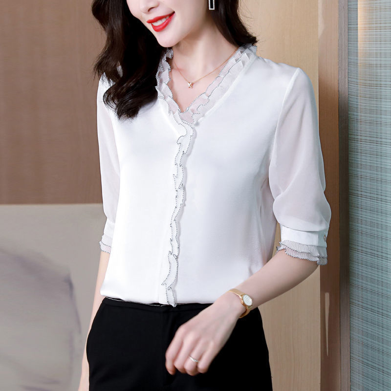 셔츠 여성 긴팔 쉬폰 셔츠 2025 봄 신상 슬림 셔츠 패셔너블하고 다재다능한 칼라 기질 탑스토어 가기