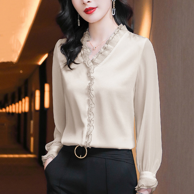 셔츠 여성 긴팔 쉬폰 셔츠 2025 봄 신상 슬림 셔츠 패셔너블하고 다재다능한 칼라 기질 탑