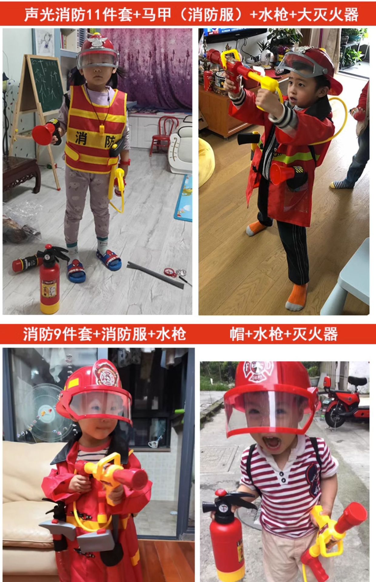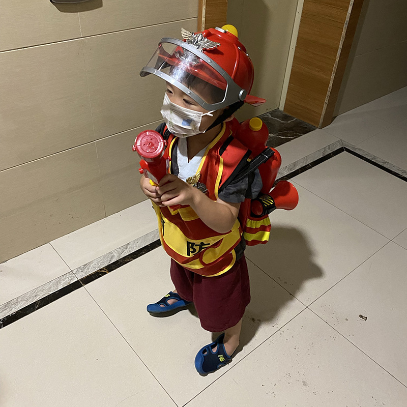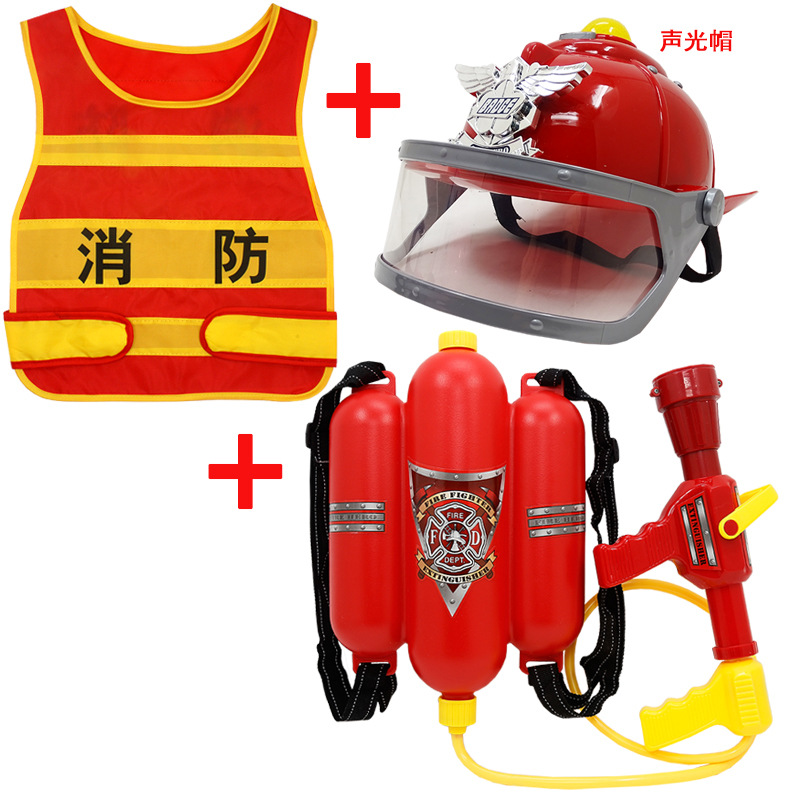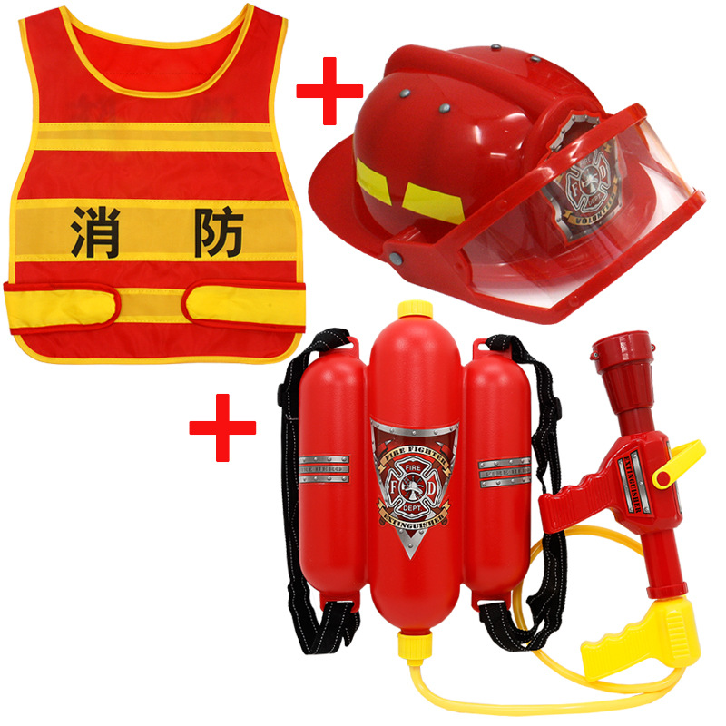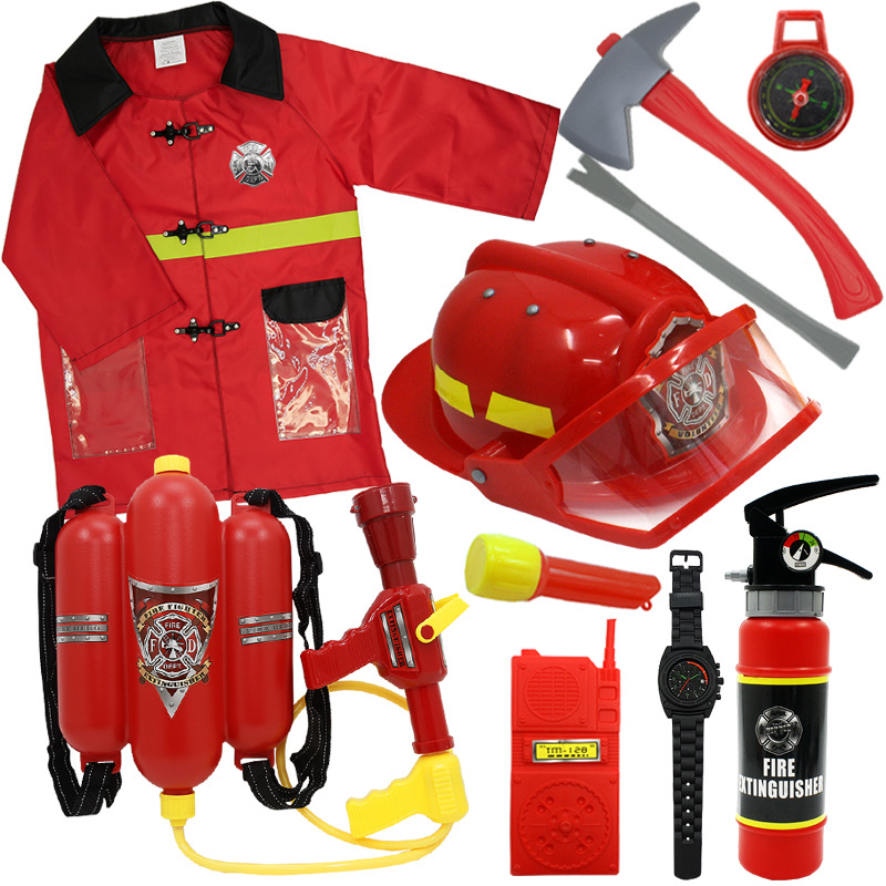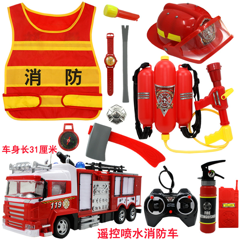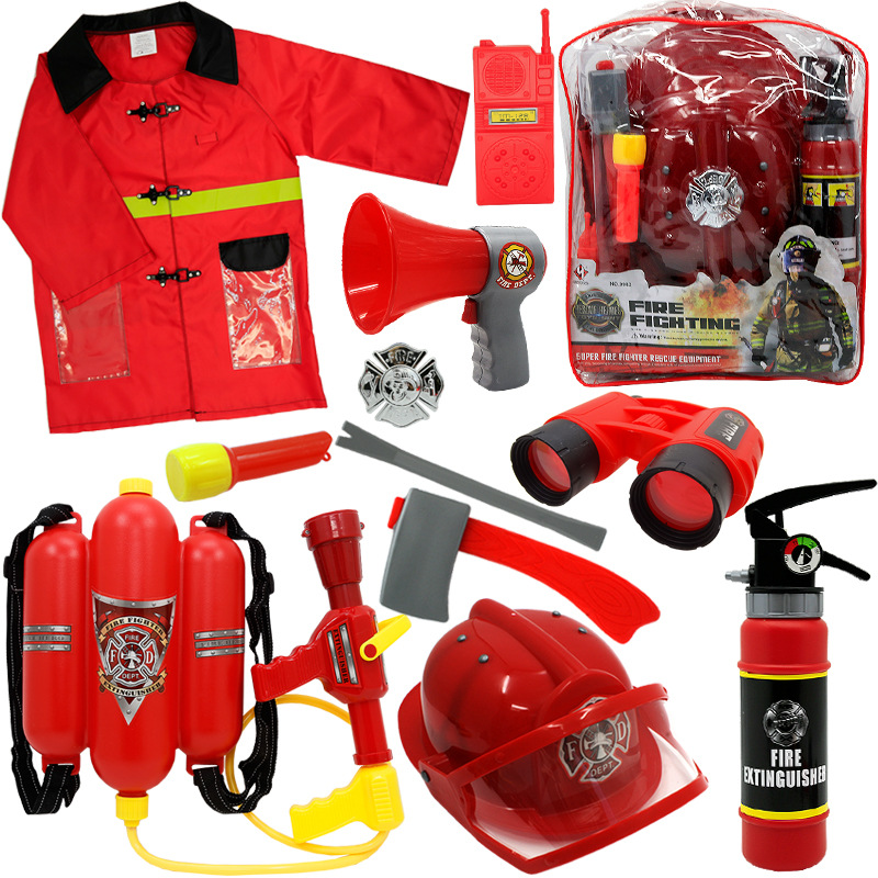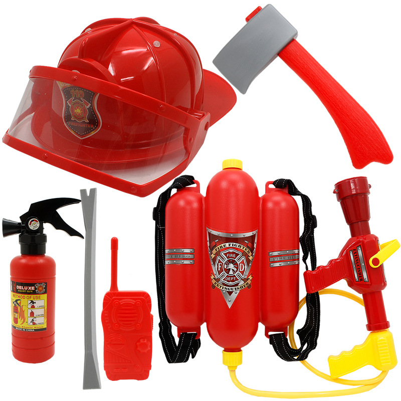 어린이 소방관 장난감 샘 세트 장비 유치원 역할 놀이 의상 소화기 조끼 모자 물총