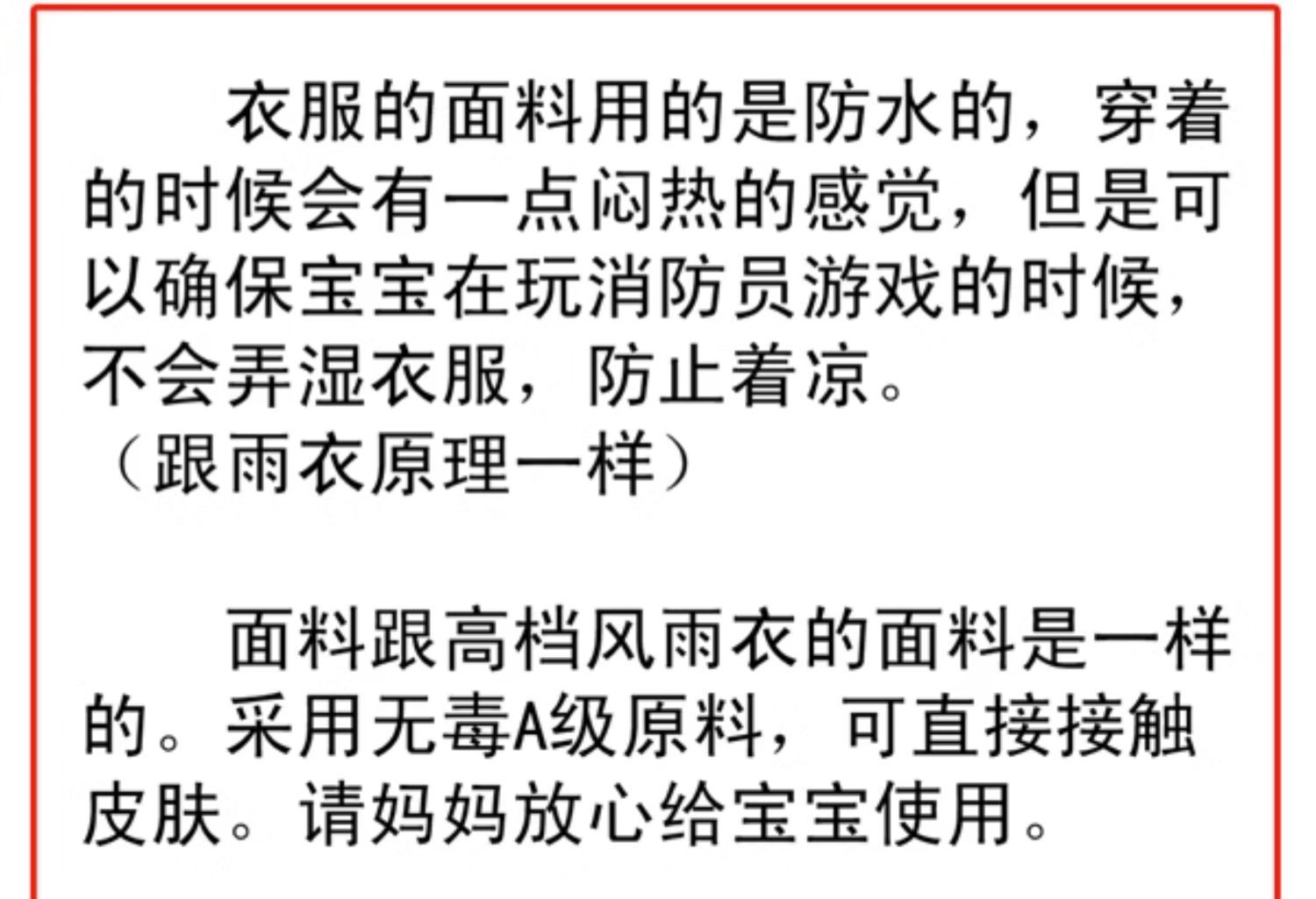 • 소리와 빛 모자 + 조끼 + 물총 + 소형 소화기 3개 도구