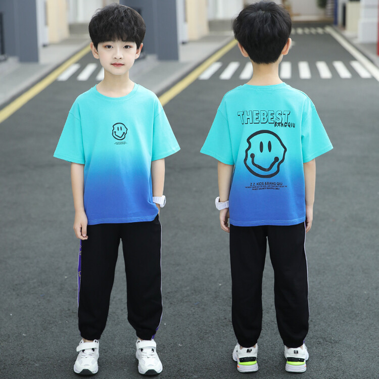 아동복 소년 여름 반팔 그라데이션 양복 2025 새로운 유행 중대형 어린이 투피스 세트 소년 한국 스포츠