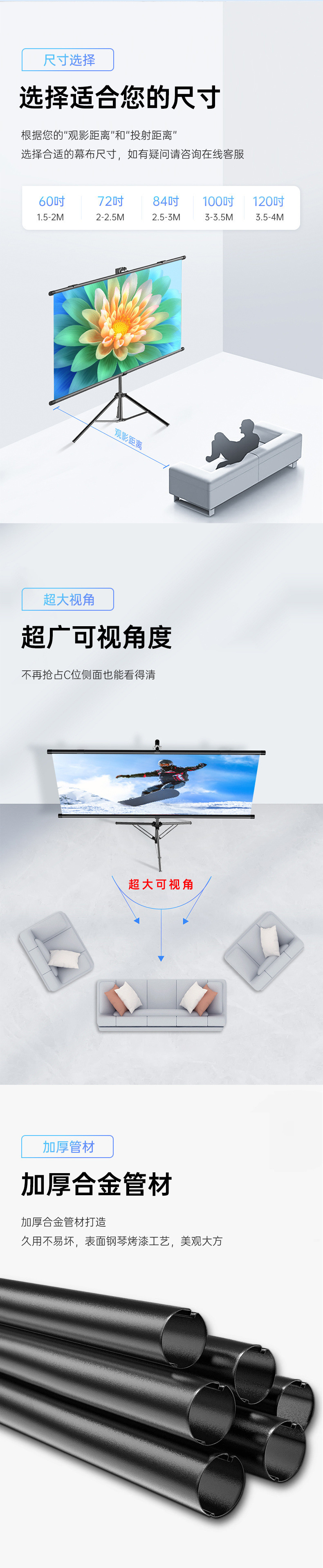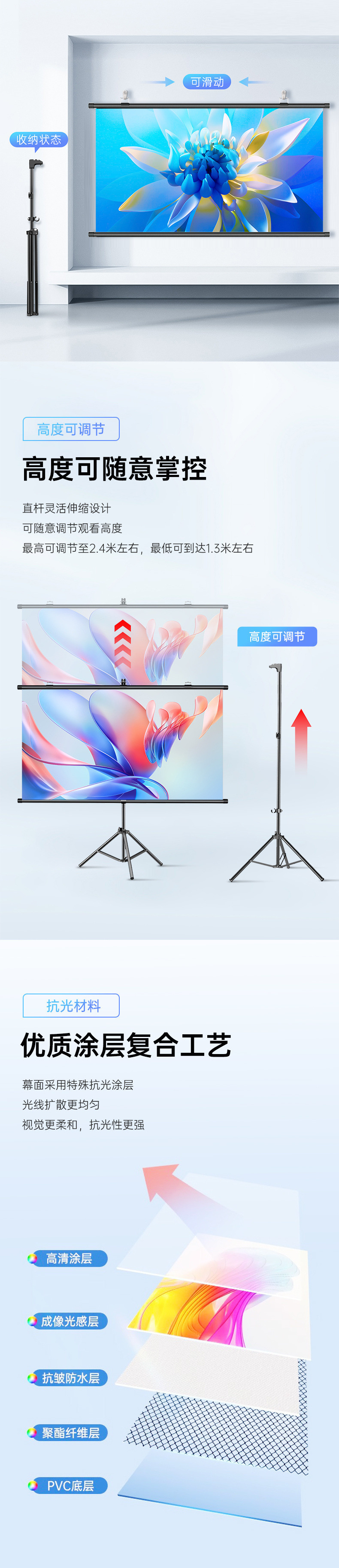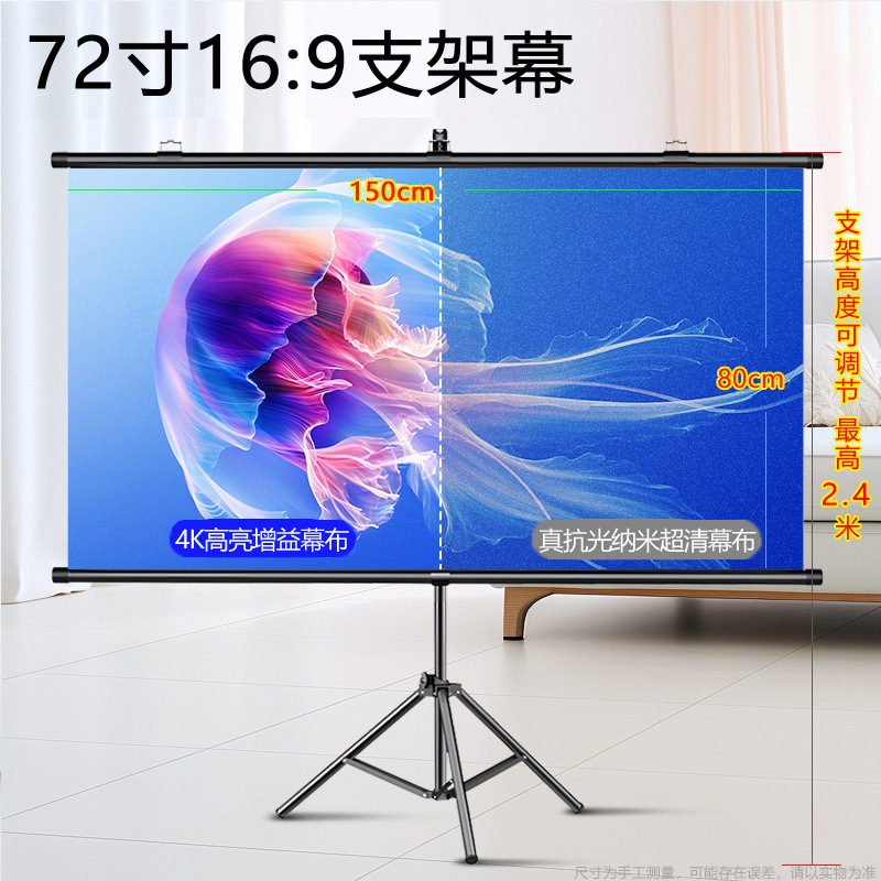 스탠드 커튼 안티 라이트 메탈 HD 프로젝션 스크린 4k 침실 홈 야외 모바일 휴대용 주간 직접 프로젝션스토어 가기
